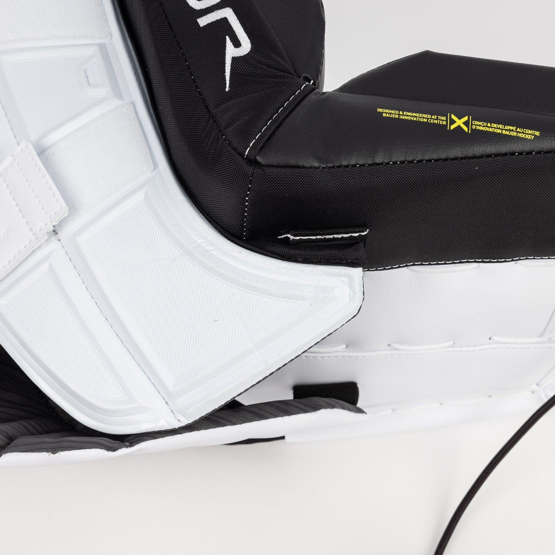 기존의 폼 코어는 일반적으로 여러 겹의 단단한 소재로 만들어지는 반면, 소프트 플렉스 코어는 더욱 유연하게 설계되어 골키퍼에게 뛰어난 반발력과 컨트롤을 제공합니다. 여기에 바우어 장비의 핵심 기술인 카본 소재의 CURV 스티프 허벅지 보호대가 더해져 빙판 위에서 움직일 때 안정성과 지지력을 향상시켜 줍니다.