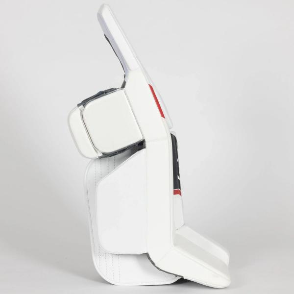 Warrior G7 주니어 골리 패드는 블랙, 화이트/블랙, 화이트/블랙/레드, 화이트/레드, 화이트/로얄, 화이트 색상으로 제공됩니다. 사이즈는 28+1인치부터 30+1인치까지 있습니다.