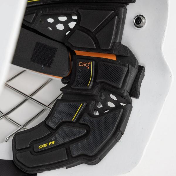 Axis F9의 쉘은 고급 EXOSHELL 유리섬유 구조에 AER-TEC 통풍 시스템이 강화되어 있습니다. 이 조합은 골키퍼가 가장 취약한 턱과 이마 부위를 포함하여 탁월한 충격 보호 기능을 제공합니다. 전략적인 편향 디자인은 강도를 더욱 향상시켜 격렬한 경기 중에도 안전을 보장합니다. 또한 최적화된 통풍구 모양과 위치는 최대의 공기 흐름을 제공하여 모든 세이브 동안 시원하고 집중된 상태를 유지할 수 있도록 합니다.