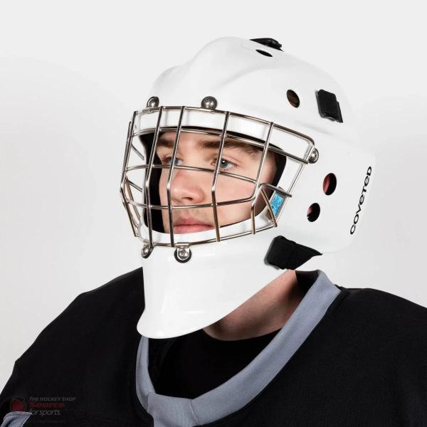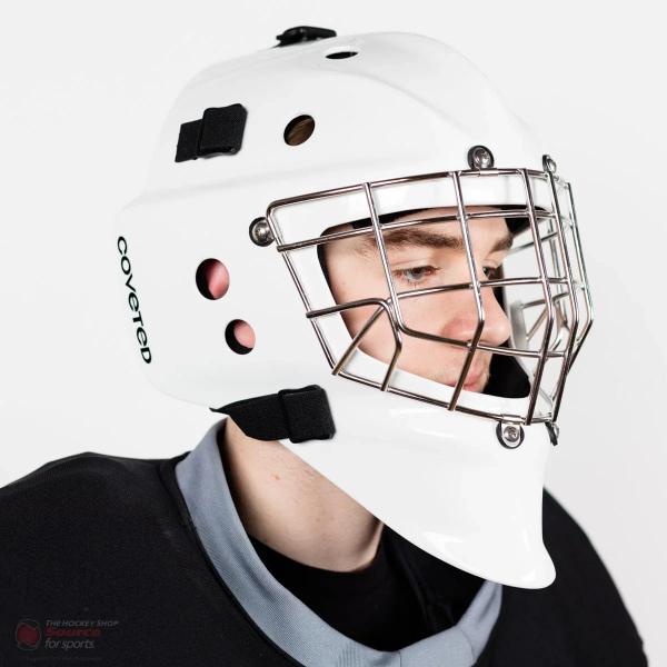 이 마스크의 구성은 프로 마스크에서 기대할 수 있는 수준입니다. 우선, 모든 종류의 경쟁적인 하키 경기를 한다면 필수적인 유리 섬유 베이스를 사용했습니다. 코비티드는 여기에 케블라를 덧대어 내구성과 보호력을 한층 더 강화했습니다. 마지막으로, 마스크 내부에 탄소 섬유를 한 겹 더 추가하여 견고함을 한층 높였습니다. 코비티드는 에폭시 수지를 사용하여 모든 층을 단단하게 접착하고 성형하여 쉘을 완성했습니다. 마지막으로, 이중 코팅과 유광 마감 처리를 통해 깔끔한 외관을 완성했습니다.
