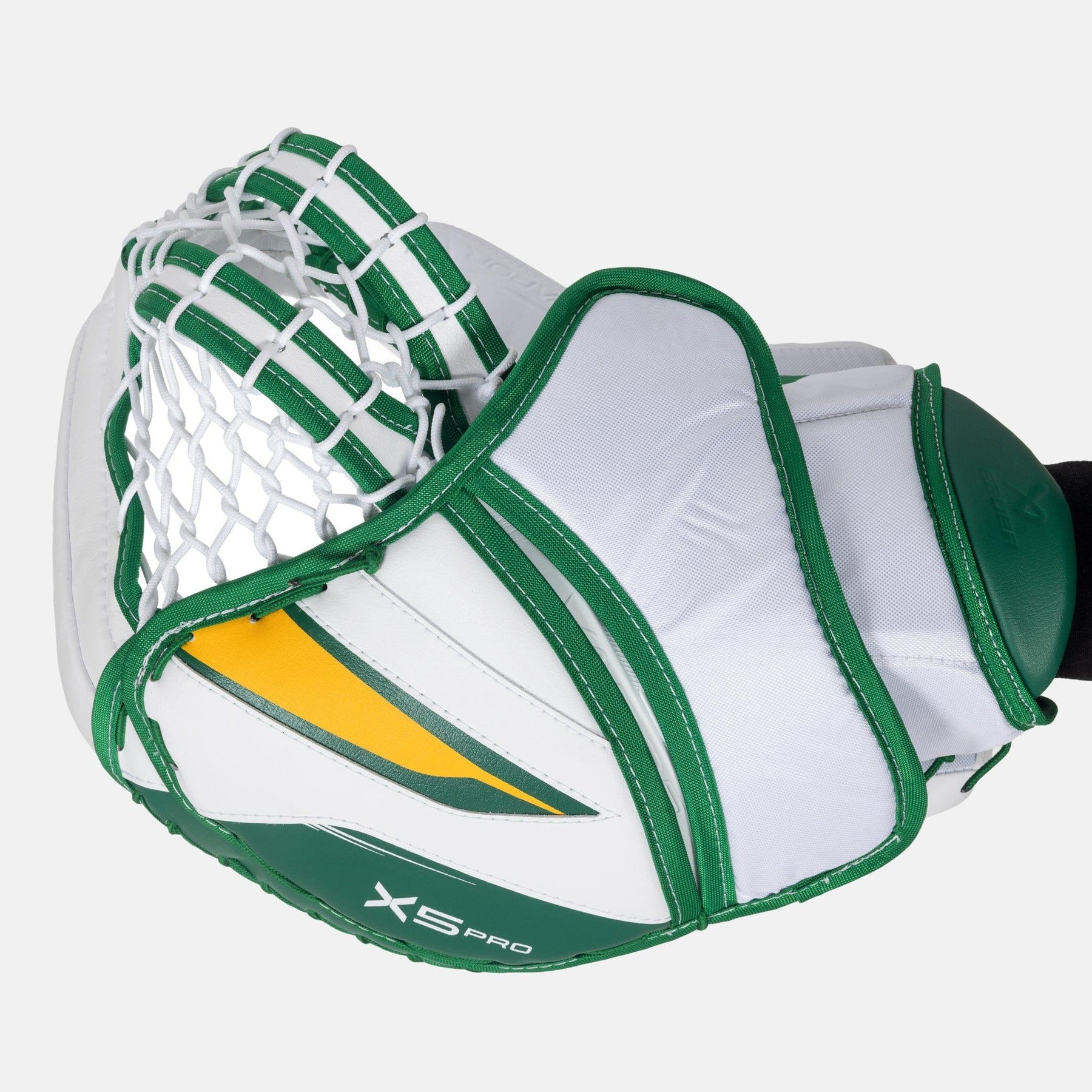 베이퍼 X5는 더블 T 포켓 디자인을 사용하여 크고 안전한 캐칭 표면을 제공합니다. 두 부분으로 구성된 구조는 골키퍼가 를 가둘 수 있도록 합니다. 포켓의 두 부분 사이에 를 가두어 안정적인 그립을 만듭니다. 더블 T 포켓 디자인은 를 빠르고 쉽게 놓을 수 있도록 합니다. 자연스러운 "깔때기" 모양은 를 안내하는 데 도움이 됩니다. 골키퍼의 손 쪽으로 를 안내하여 더 깨끗하고 빠른 캐치를 가능하게 합니다.
