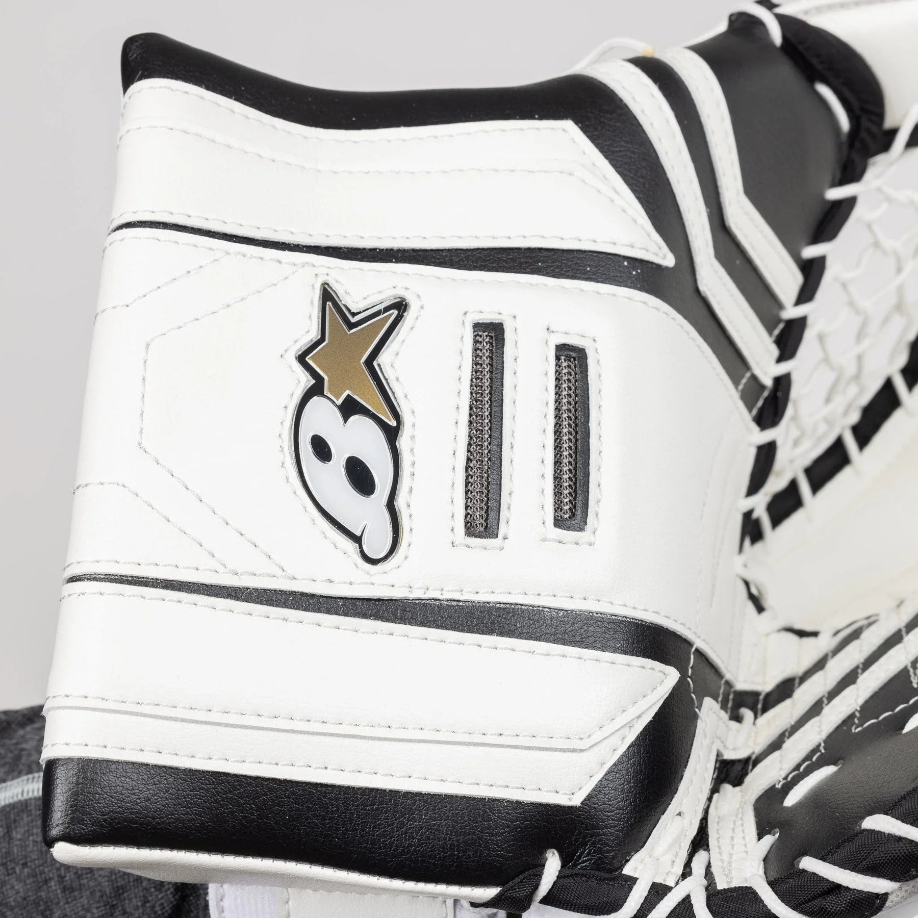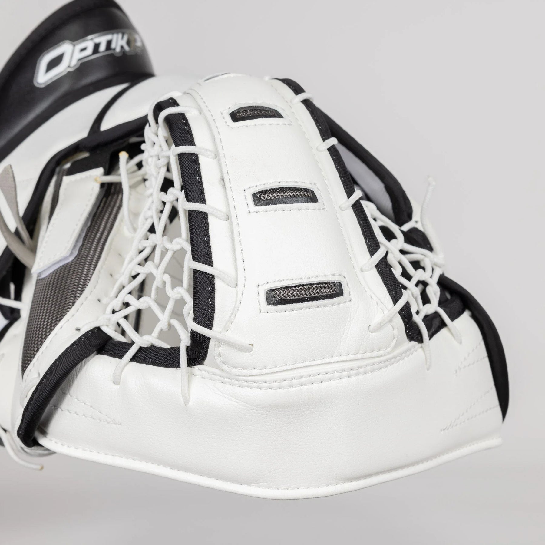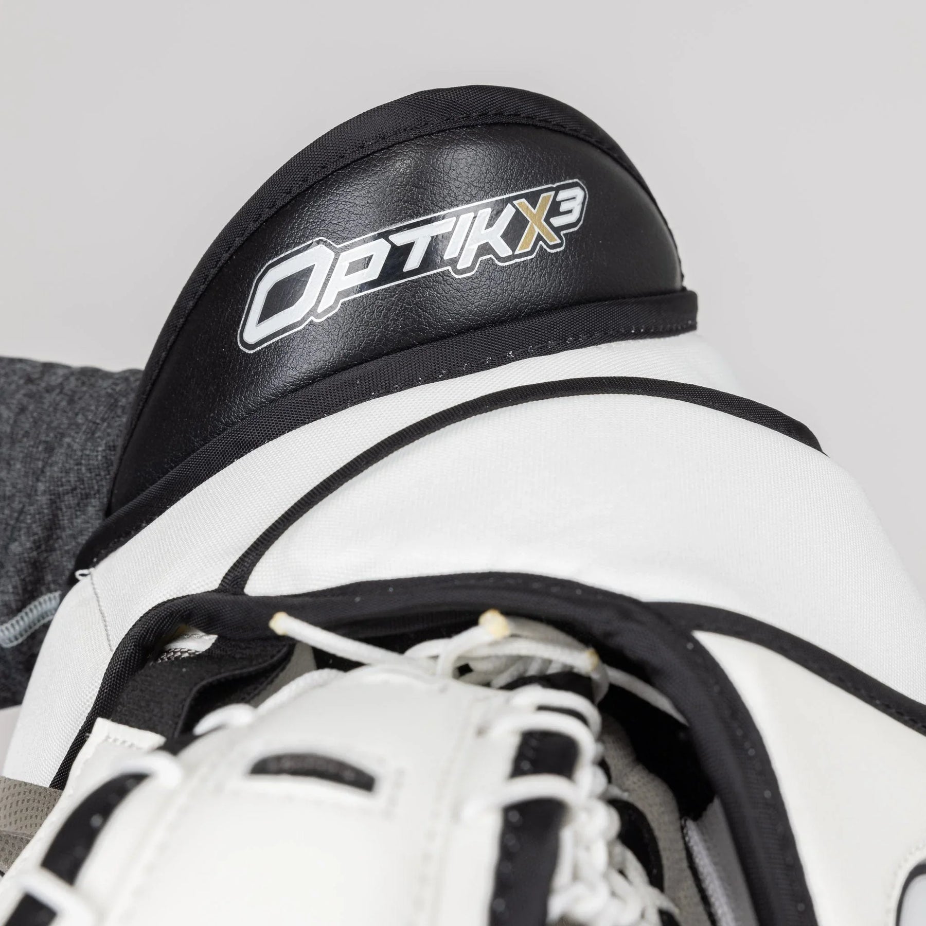 Optik X3 글러브는 전통적인 JenPro 외장 소재로 제작되었습니다. 이 소재는 내구성이 뛰어나고 신뢰할 수 있는 소재로, Brian의 거의 모든 골리 장비에서 찾아볼 수 있습니다.