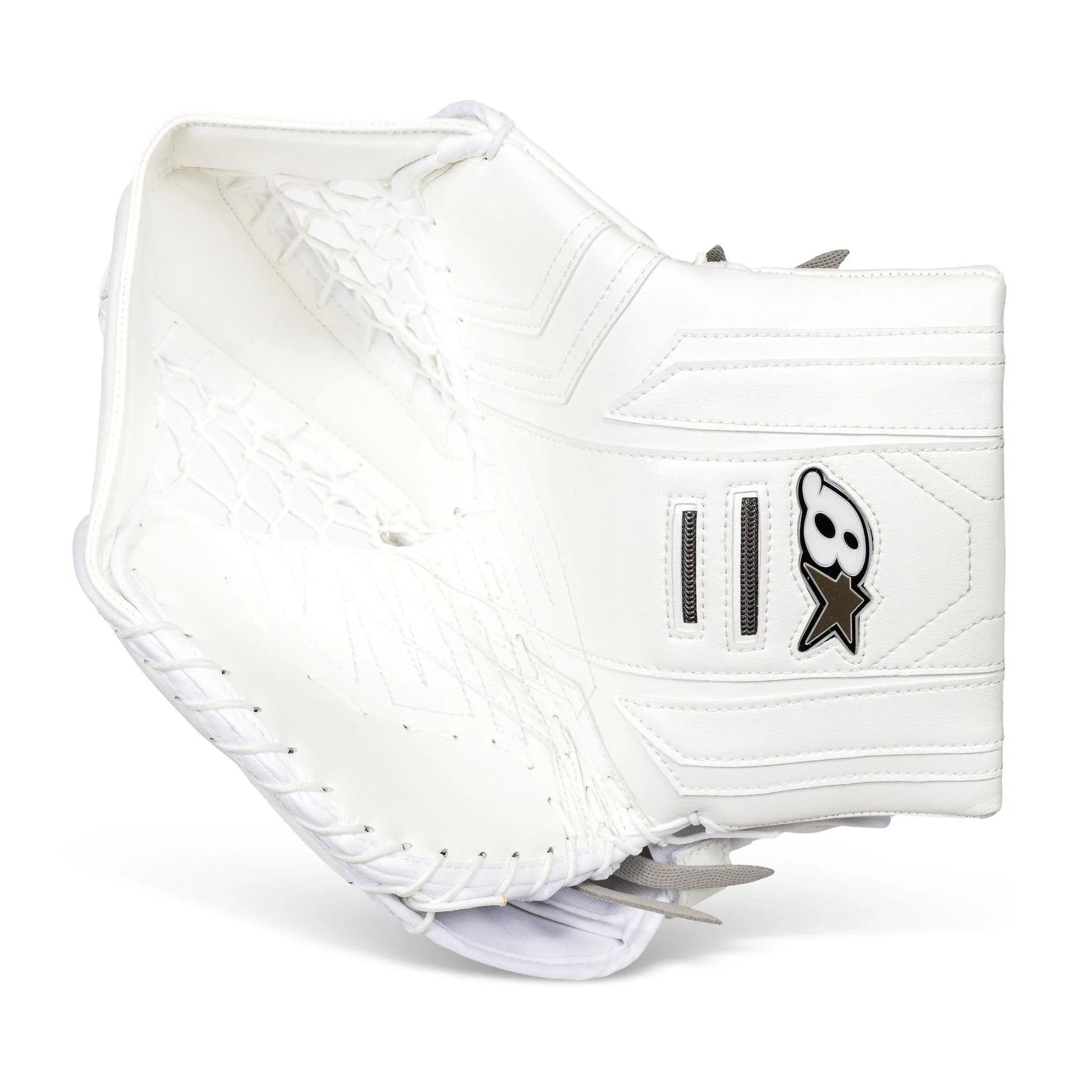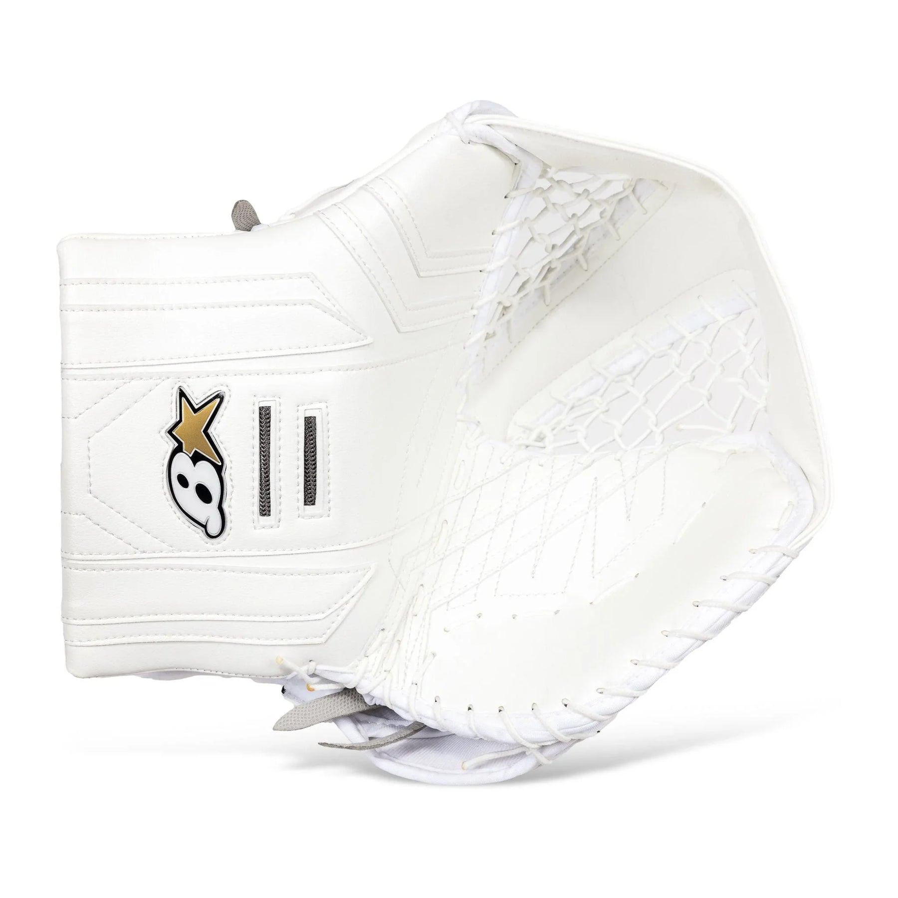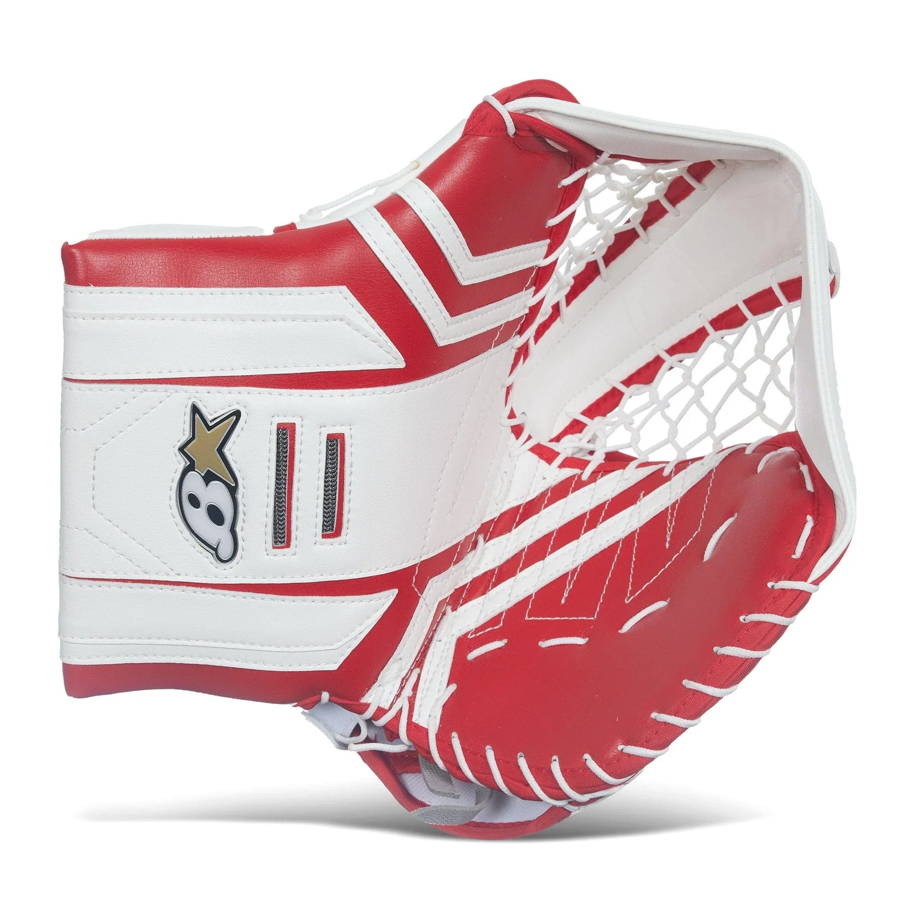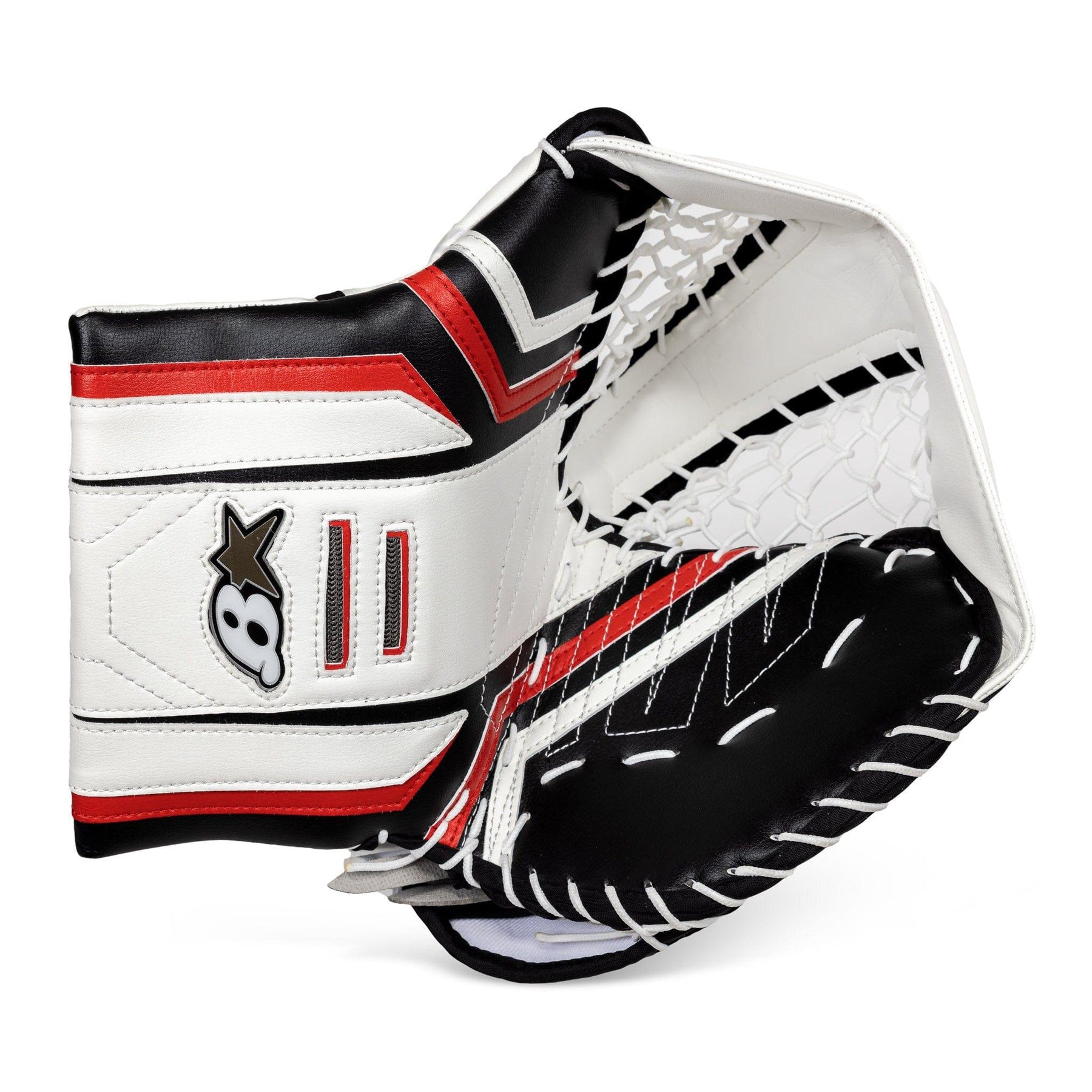 Brian's OPTiK X3 성인 골리 글러브는 화이트/블랙, 화이트, 화이트/블루, 화이트/레드, 화이트/블랙/레드 색상으로 출시됩니다. 오른손으로 공을 잡는 사용자를 위해 풀 라이트 캐치 옵션도 제공됩니다.