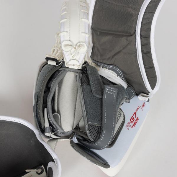 G7의 스트랩 방식은 G4와 동일합니다. 탈착식 팜은 이전 G 시리즈 모델과 마찬가지로 그대로 유지되어 골키퍼가 트래퍼의 캐치 각도를 변경할 수 있으며, 필요에 따라 Warrior에서 추가 팜을 구매할 수 있습니다.
