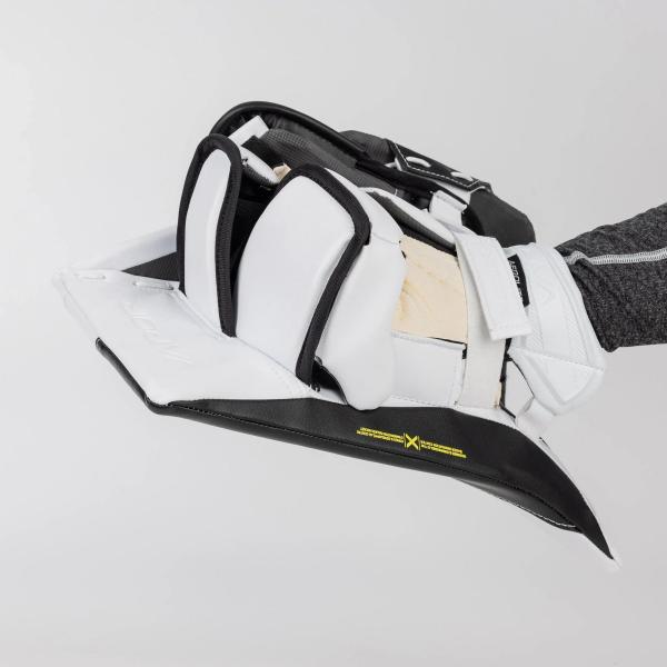 모든 하키 골키퍼가 알듯이, 믿을 수 있고 뛰어난 성능의 장비는 빙판 위에서의 성공에 필수적입니다. 바우어는 명성 높은 베이퍼(Vapor) 장비를 2023 시즌을 위해 새로운 기술과 기존 기술, 그리고 다른 장비 제품군에서 검증된 기술들을 결합하여 업그레이드했습니다. 베이퍼 X5 블로커는 듀라코넥트(DuraConnekt) 소재의 손바닥 부분, 쇼크라이트(Shocklite) 폼과 쉴드, 그리고 측면 플레이트를 따라 몰딩 처리된 F1 로고가 특징입니다.
