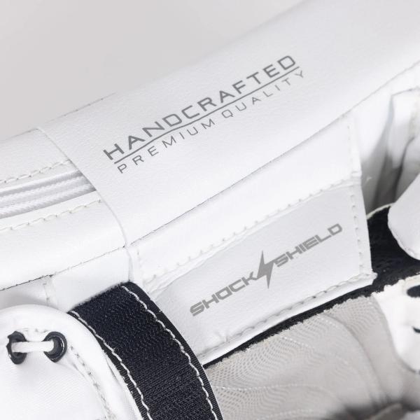 개방형 커프 디자인으로 손의 움직임을 더욱 자유롭게 하여 얼음 위에서 편안하게 움직일 수 있습니다. 조절 가능한 손목 스트랩은 안정적인 착용감을 제공하며, 사용자의 플레이 스타일에 맞춰 편안하게 착용할 수 있습니다. 항균 그립 오버레이가 적용된 VX 스웨이드 소재의 손바닥은 탁월한 감촉과 컨트롤을 선사합니다.