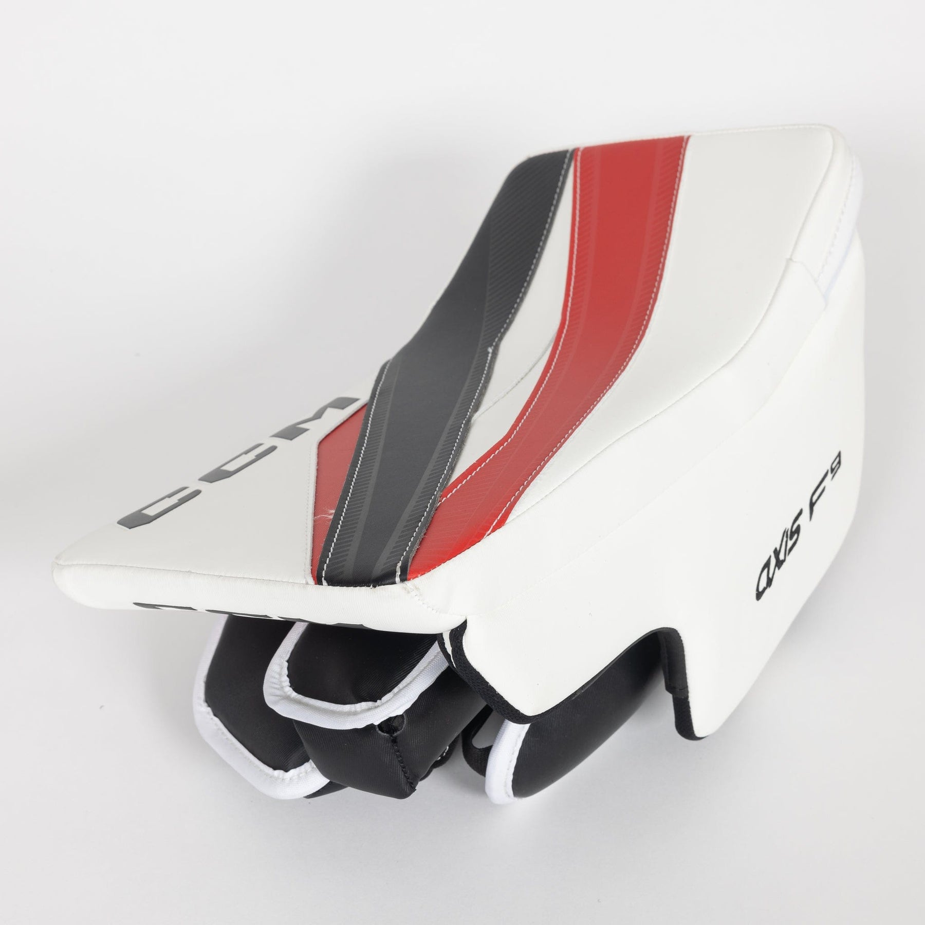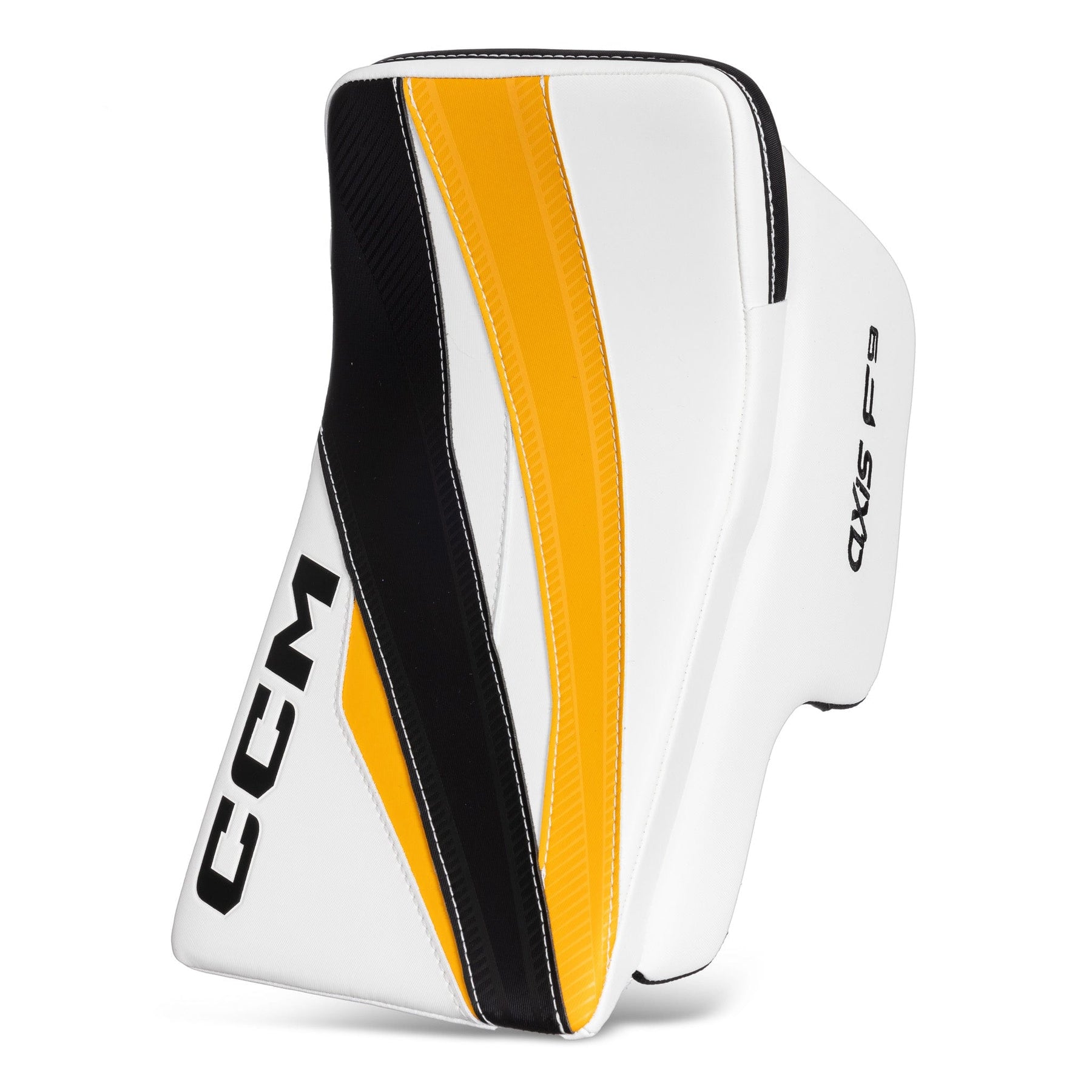 CCM Axis F9 인터미디어 골리 블락커는 보스턴 브루인스, 시카고 블랙호크스, 레드윙스, 메이플 리프스, 캐나디언스 색상과 화이트/블랙, 화이트/네이비, 화이트 색상으로 출시됩니다. 모든 색상은 일반 또는 풀 라이트 블로커 옵션이 제공됩니다.