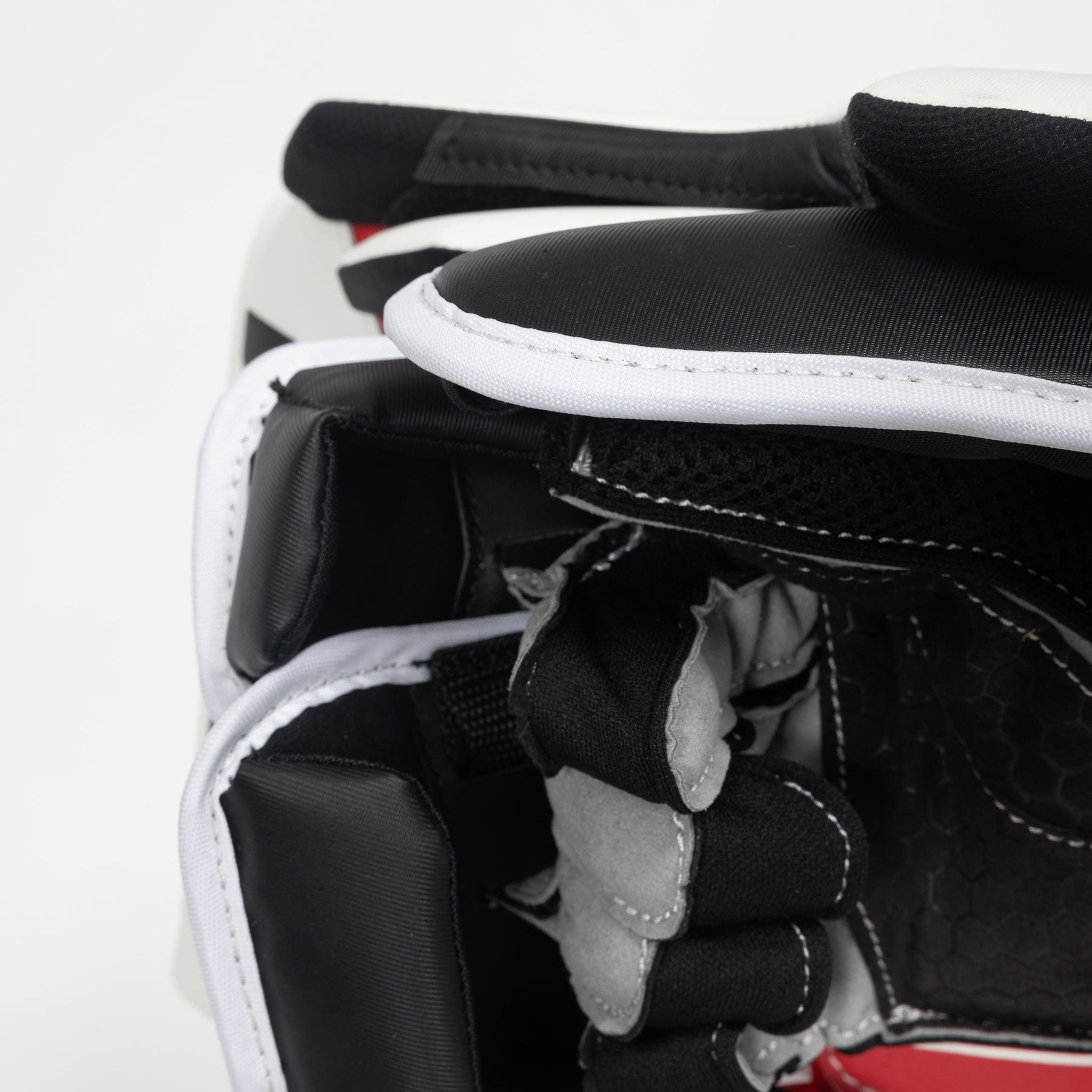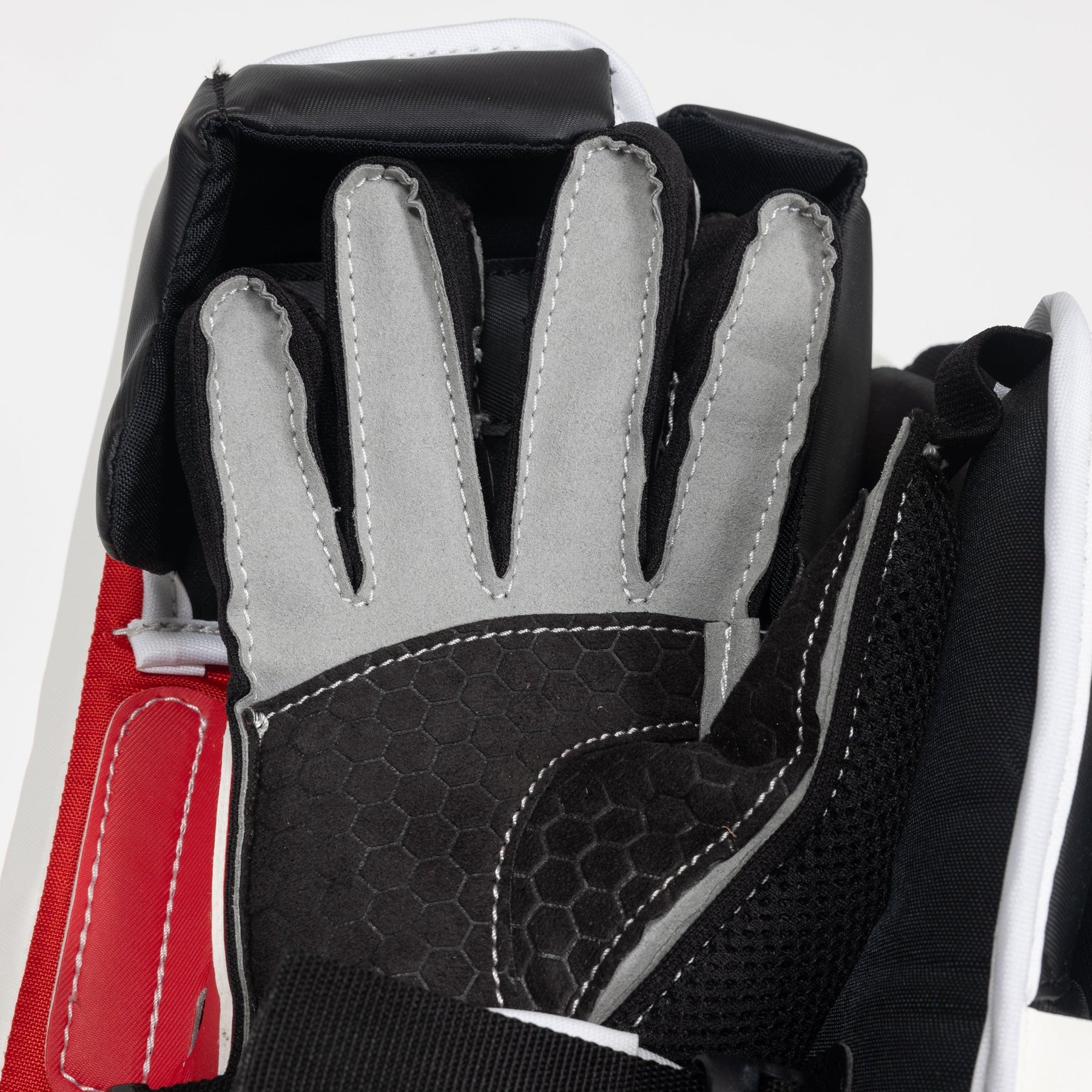 손바닥 부분은 강화된 내쉬 소재로 제작되어 블로커 전체에 균형 잡힌 느낌을 제공합니다. 내구성이 뛰어난 소재는 찢어짐이나 구멍이 생기는 것을 방지하여 오래 사용할 수 있도록 설계되었습니다.