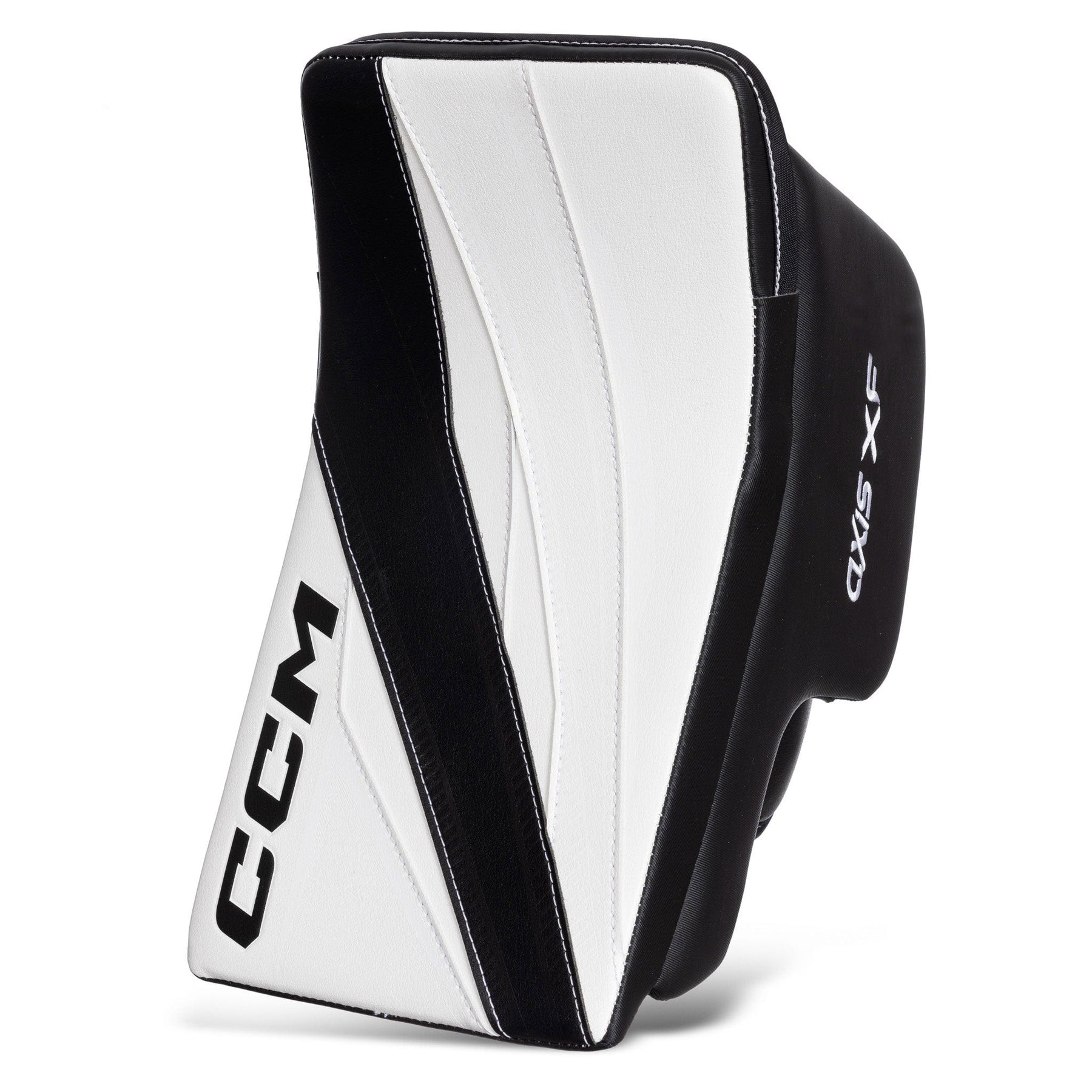 CCM Axis XF 성인 골리 블락커는 블랙, 화이트, 그리고 블랙/화이트 색상으로 출시됩니다. 또한, 화이트 색상에는 일반 및 풀 라이트 캐치 핸드 옵션이 제공됩니다.