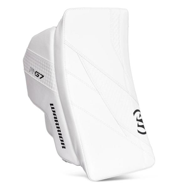 Warrior G7.1 성인 골리 블락커는 블랙, 화이트/블랙, 화이트/블랙/레드, 화이트/레드, 화이트/로얄, 화이트 색상으로 출시됩니다. 매장 및 온라인에서는 일반 및 풀라이트 옵션 모두 화이트 색상만 구매 가능합니다. 더 다양한 색상과 옵션은 Warrior 웹사이트에서 확인하실 수 있습니다.