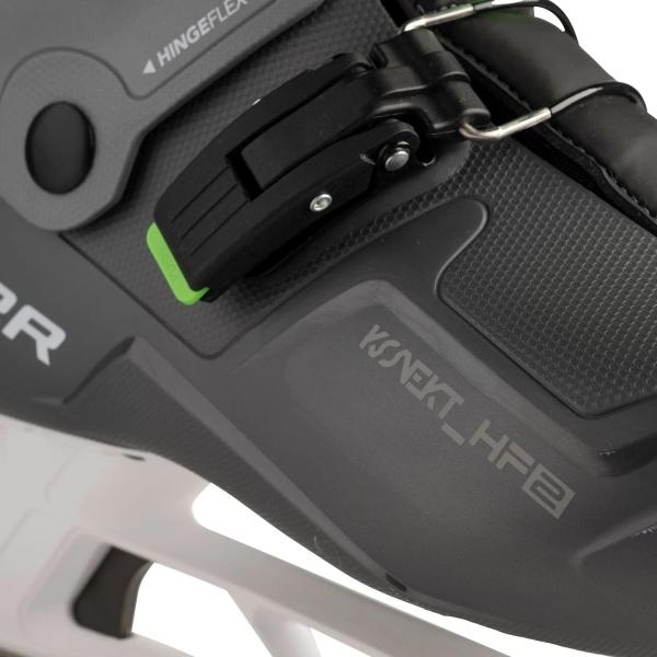 기존과 달리 Bauer KONEKT HF2는 스키 부츠와 유사한 스트랩, 커프, 버클을 사용합니다. 또한 기존 KONEKT 스케이트에도 있었던 HingeFlex 기술을 사용합니다. HingeFlex는 부츠의 상단 쉘 커프가 움직일 때 발목과 함께 움직이는 기술입니다. HingeFlex는 궁극적으로 발목 부위를 22% 더 유연하게 만듭니다. 발목과 발가락에 있는 두 개의 버클은 발을 순식간에 고정하도록 설계되어 그 어느 때보다 빠르고 쉽게 경기를 준비할 수 있습니다.