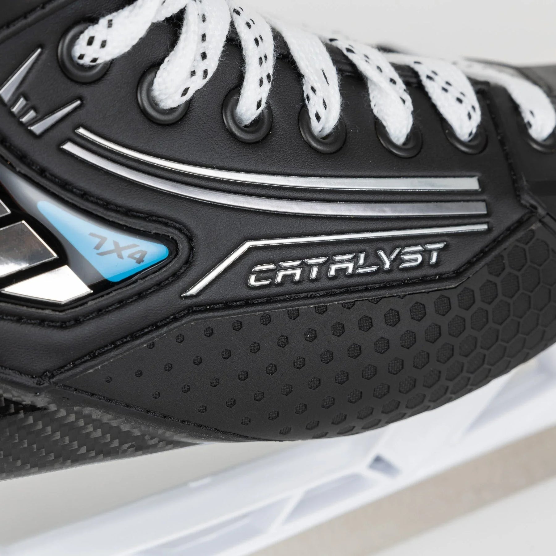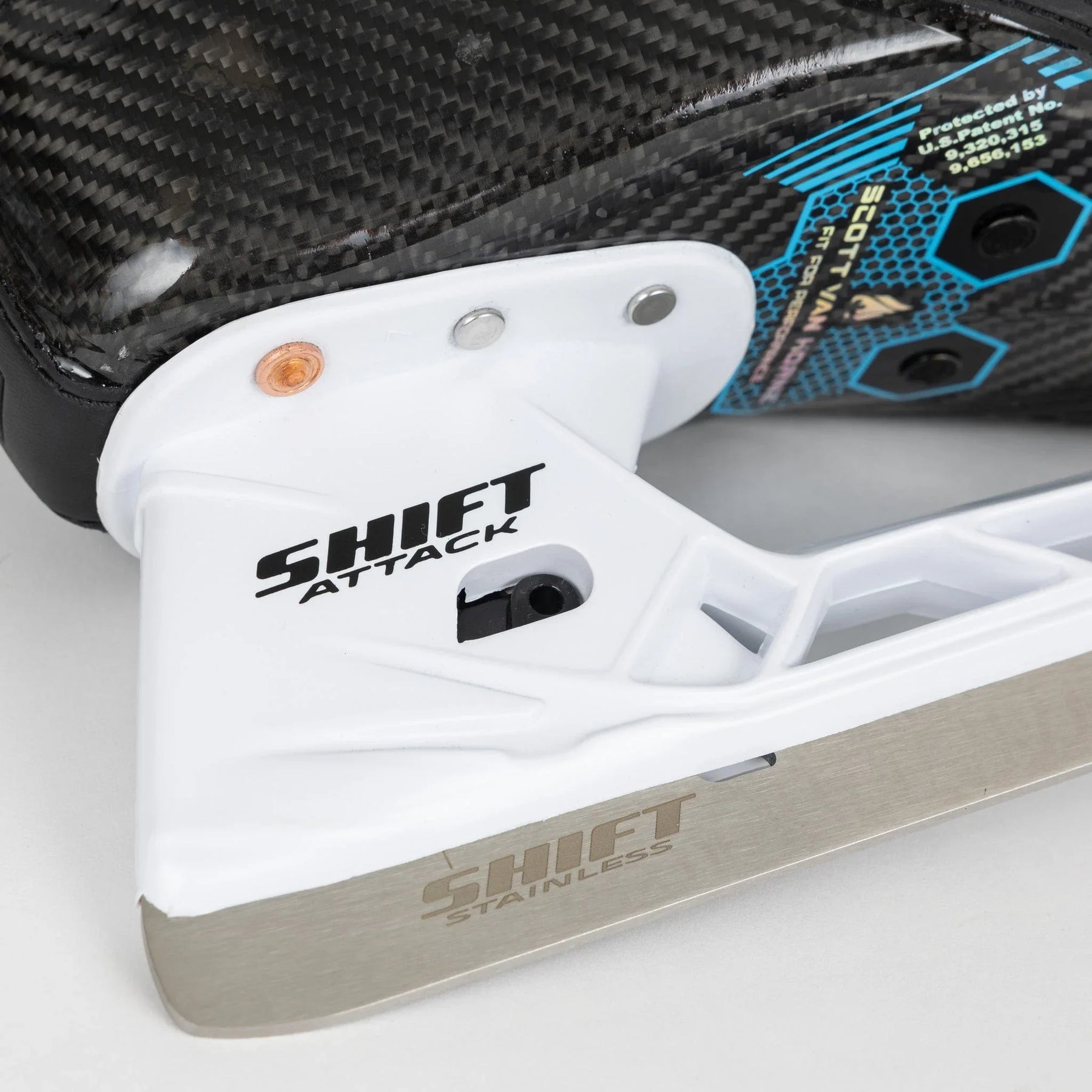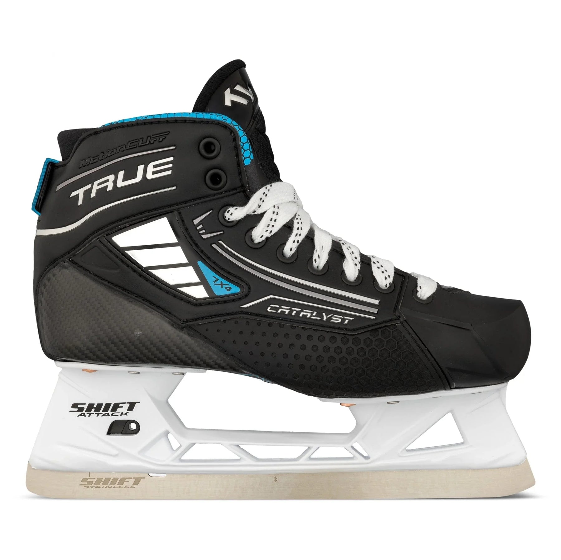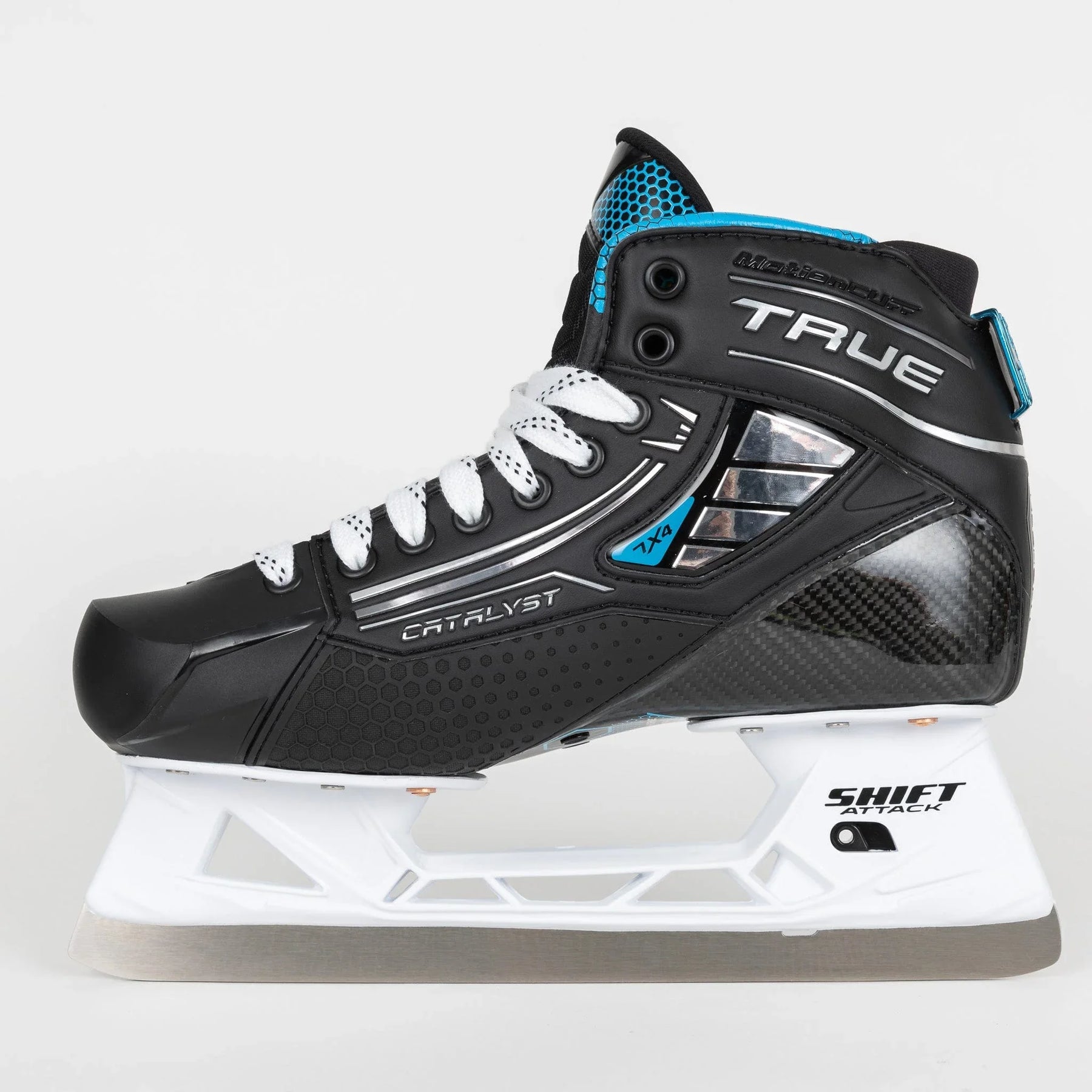 TF7과 마찬가지로 TRUE는 골리 전용 Shift 홀더인 Shift Attack 홀더를 사용했습니다. 이 홀더는 플레이어 홀더에서 볼 수 있는 것과 동일한 BenchChange 툴리스 블레이드 릴리스 기능을 갖추고 있습니다. 7X4에 사용된 기본 스틸은 Shift Attack 스틸이며, 기존 TRUE 블레이드에서 볼 수 있는 더 두꺼운 스틸을 원하는 골리를 위해 4mm 오프셋 스테인리스 스틸 및 DLC 블랙 스틸 블레이드를 옵션으로 선택할 수 있습니다.