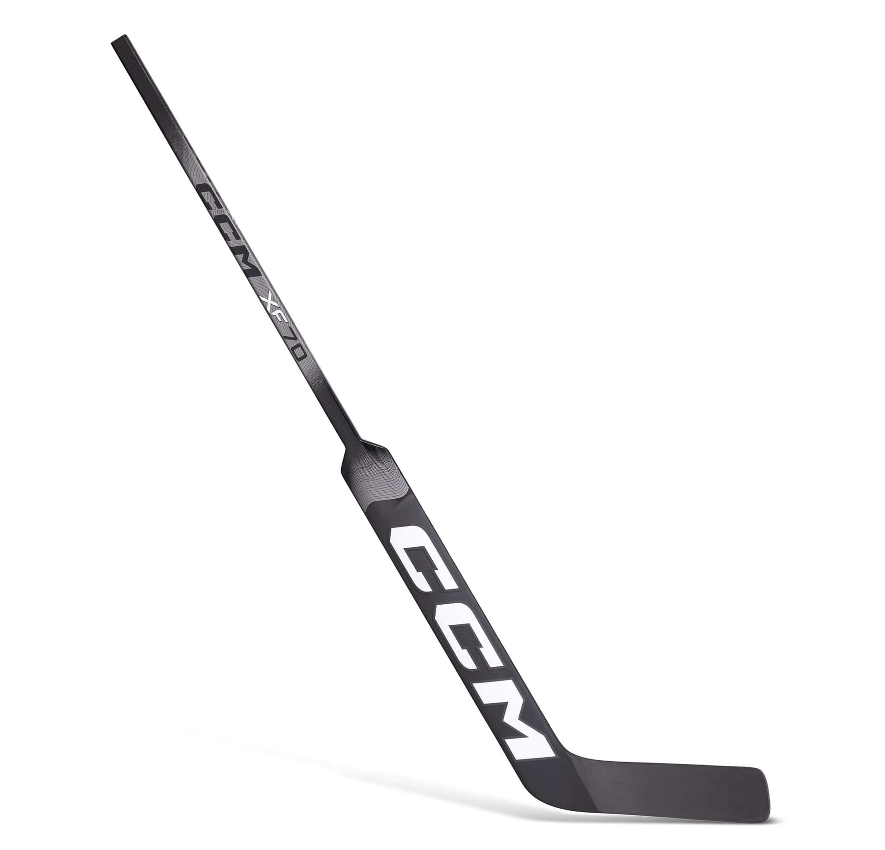 CCM Axis XF70 성인용 골리스틱은 블랙/아이스 그레이 색상으로 제공되며 패들 길이로 제공됩니다. 24"-26". P4 블레이드 패턴도 특징입니다.