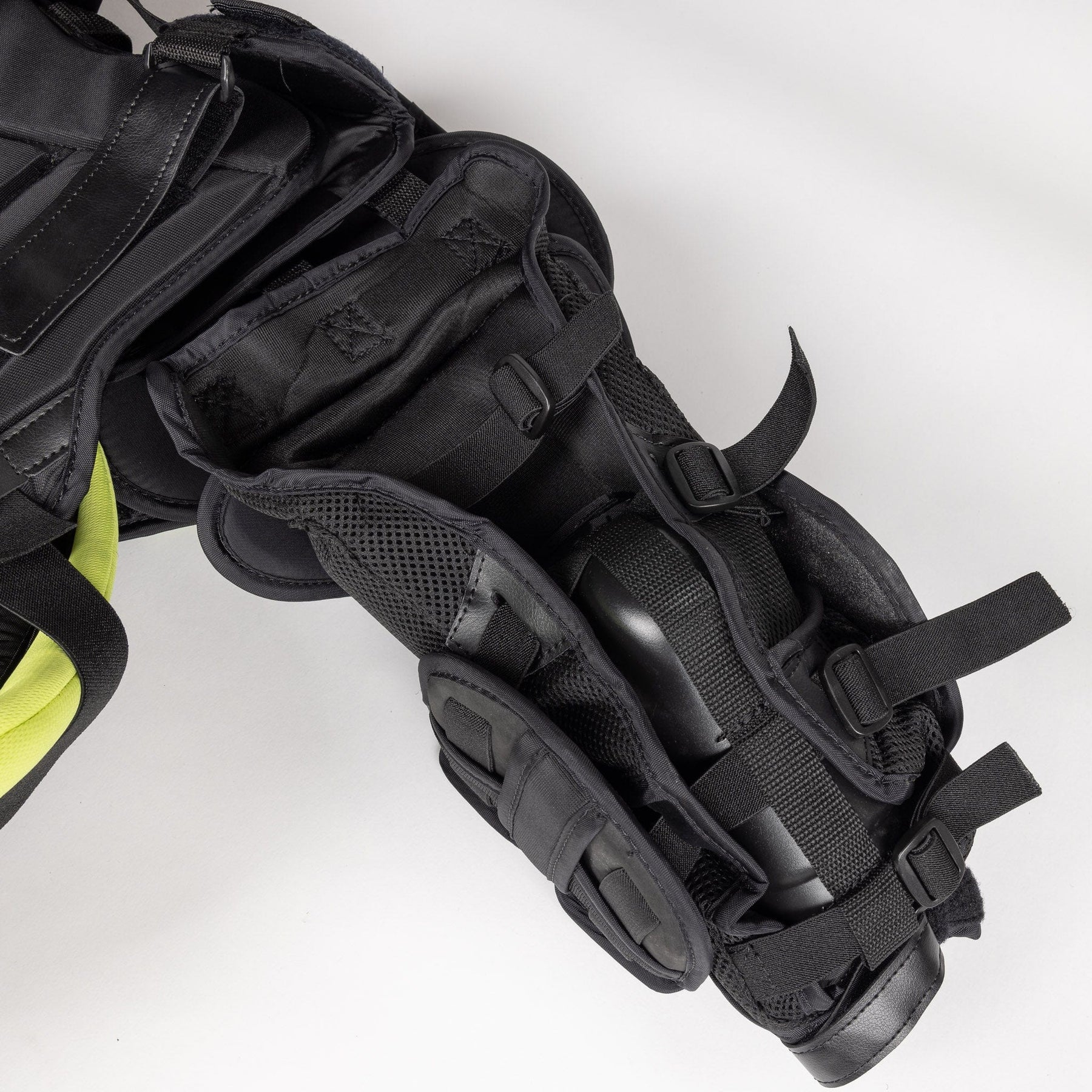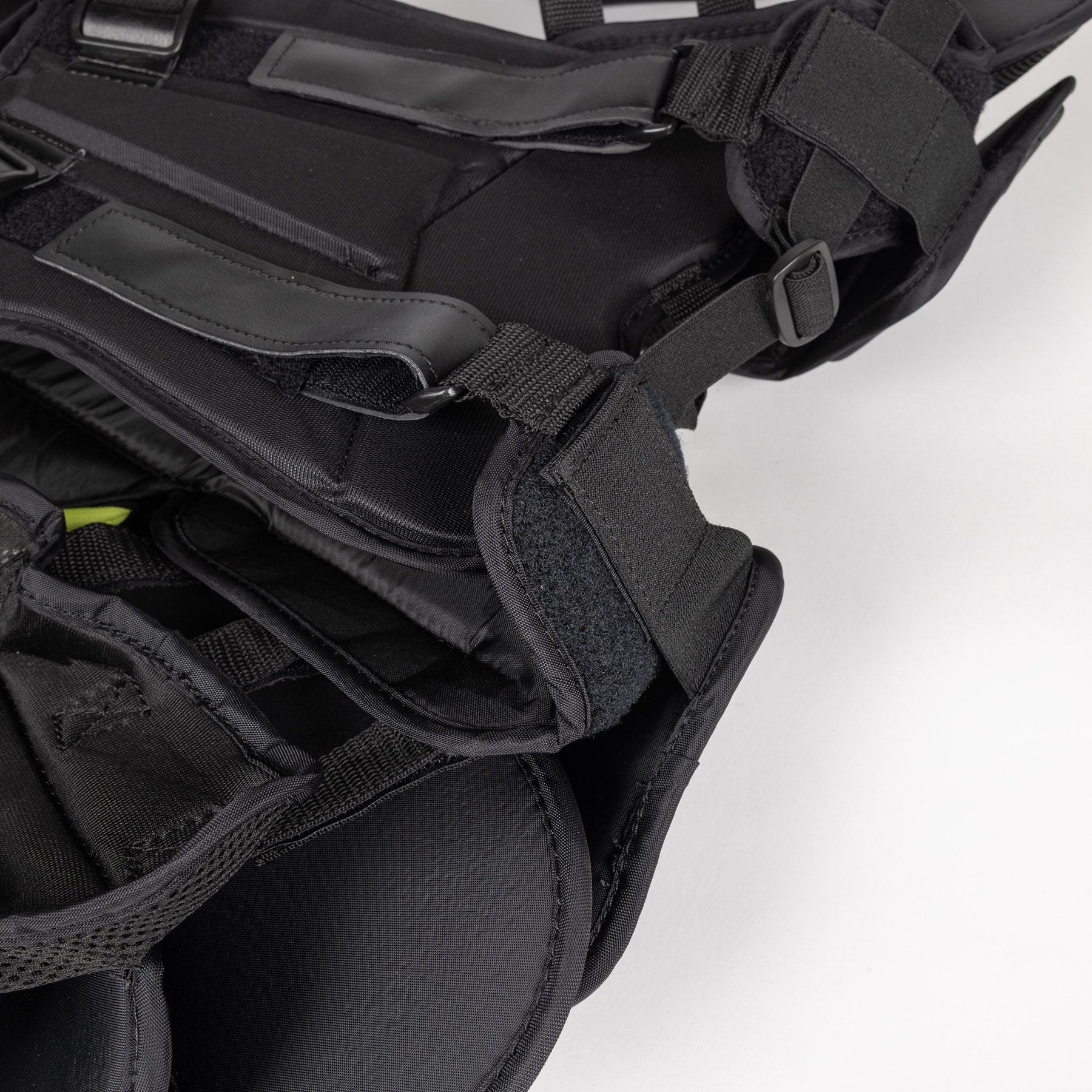 백플레이트는 벨크로와 스트랩핑으로 완벽하게 조절 가능하여 플로터의 크기와 전체 가슴 높이를 고정할 수 있을 뿐만 아니라 주변 갈비뼈 보호대를 조이거나 풀 수 있습니다.