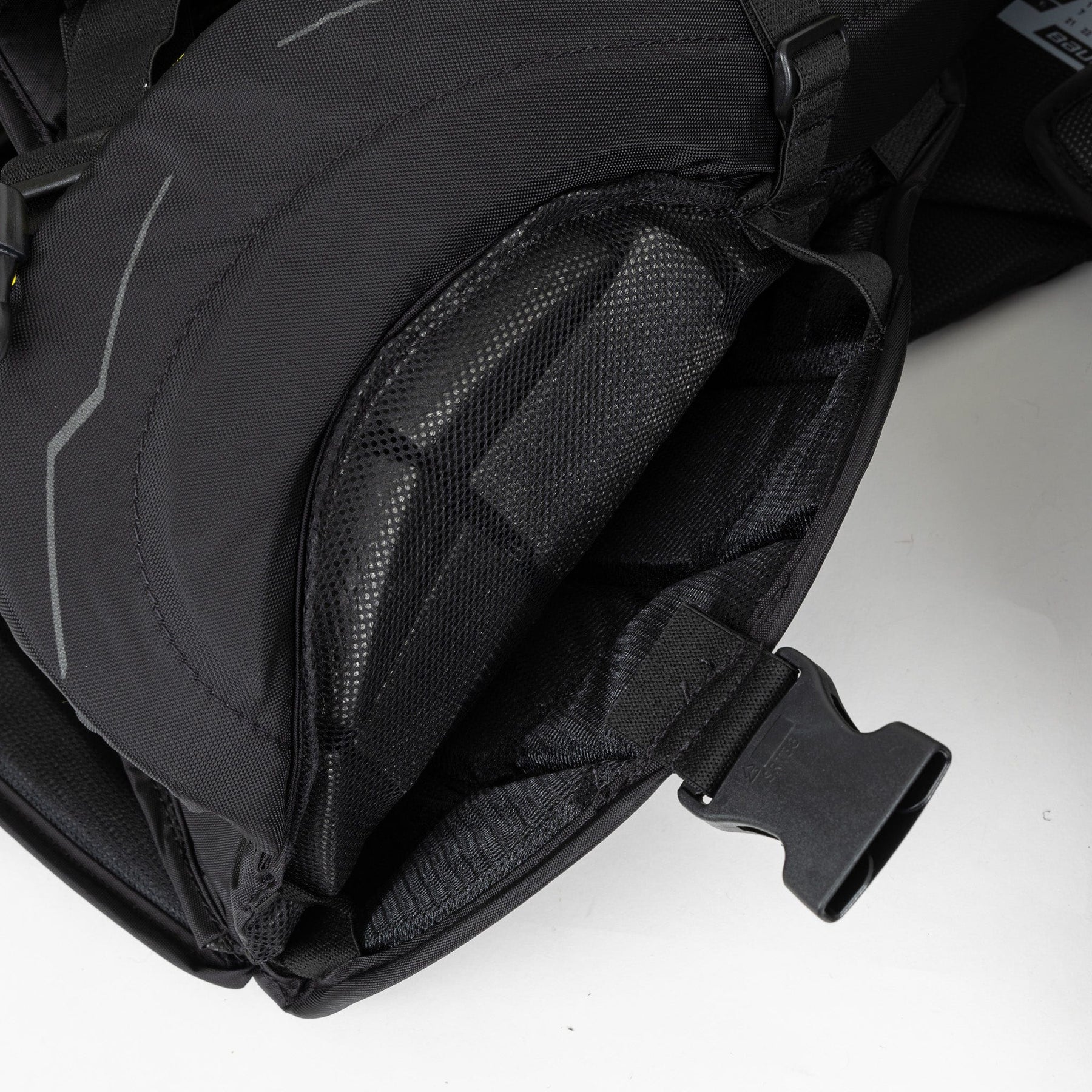 새로운 이중 공기 흐름 디자인이 적용된 이 스트랩은 통풍을 극대화하고 안정적인 공기 흐름을 보장하여 온도를 조절하고 경기 중 편안함을 유지합니다. 또한, 파이팅 스트랩이 부착되어 있어 더욱 안전하게 보호하고 격렬한 경기 중에도 보호대가 제자리에 단단히 고정됩니다. 골텐더는 혁신적인 백 스트랩을 통해 믿을 수 있는 지지력과 편안함을 제공하여 경기의 흐름을 바꿀 수 있는 세이브에 집중할 수 있습니다.