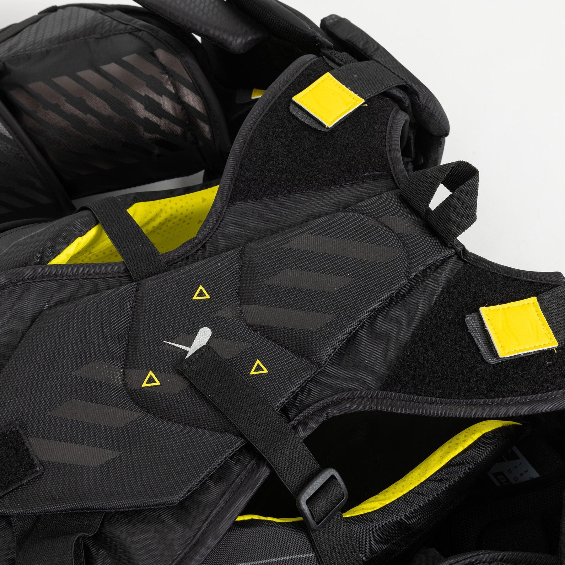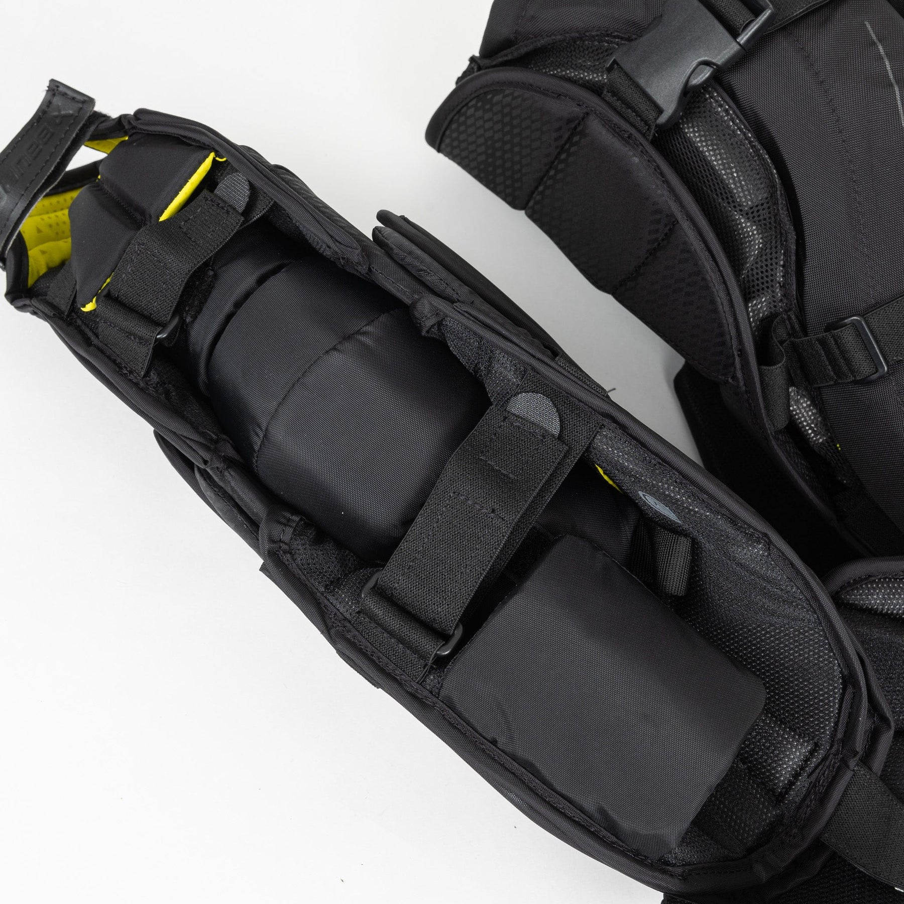 이 팔 보호대는 탈부착 및 조절이 가능하여 골키퍼가 자신의 취향과 플레이 스타일에 맞춰 착용감을 조절할 수 있습니다. 골텐더는 자신의 편안함과 선호도에 따라 조절 가능한 팔을 안쪽으로, 바깥쪽으로, 또는 양쪽 모두 넣을 수 있습니다. 새로운 하이브리드 벨리 시스템은 팔의 적응력과 유연성을 향상시킵니다. 섀도우 체스트 & 암 프로텍터의 조절 가능한 팔 보호대는 골텐더가 개인에게 딱 맞는 착용감과 탁월한 움직임의 자유를 누리도록 하여, 빙판 위에서의 모든 플레이에서 집중력과 민첩성을 유지할 수 있도록 합니다.