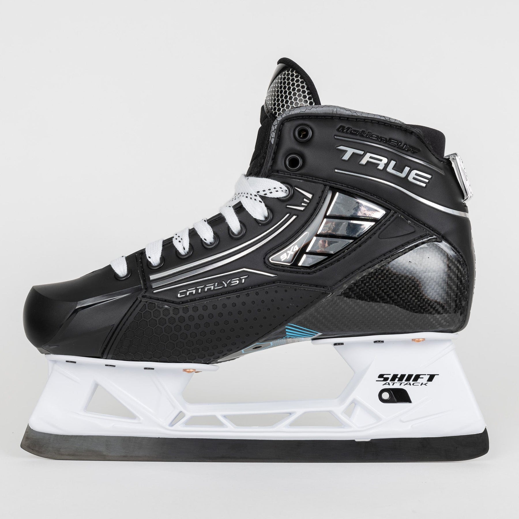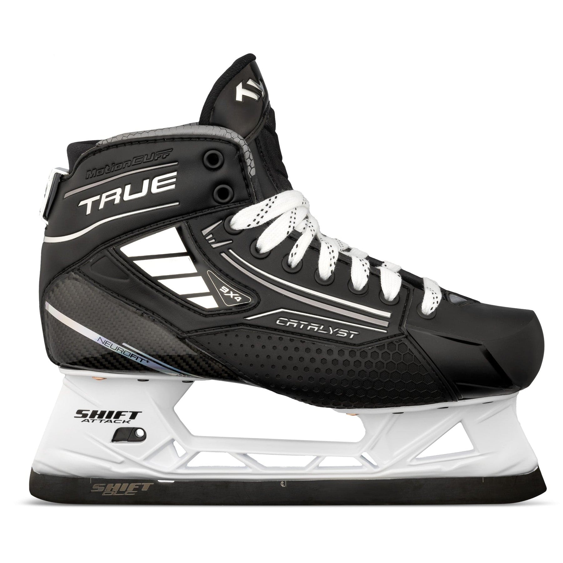 TRUE Catalyst 9X4 골리 스케이트는 Shift Attack 홀더와 스틸 블레이드를 특징으로 합니다. Shift Attack 홀더에는 새로운 벤치 체인지 기술이 적용되어 스케이트 러너를 쉽고 간편하게 교체할 수 있습니다. 스테인리스 러너는 간편하며 일반 스틸 러너보다 오래 사용할 수 있도록 설계되었습니다.
