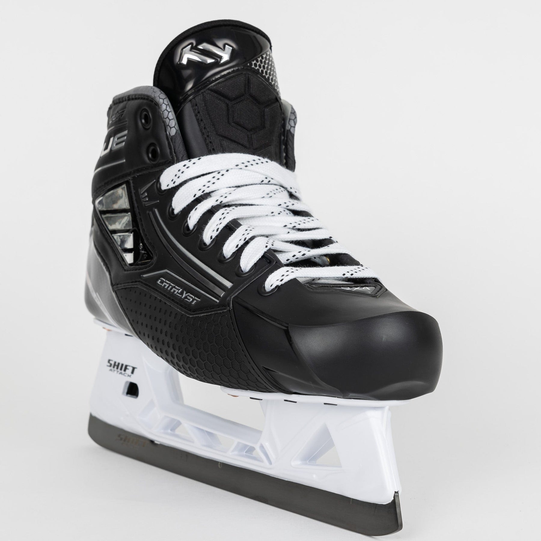 NHL 현역 골텐더의 85% 이상이 선호하는 동일한 핏과 성능을 제공하는 Catalyst 9X4 골리 스케이트는 파이프 사이에서 최고의 반응성, 컨트롤, 그리고 민첩성을 제공하도록 설계되었습니다. Neurofit+ 일체형 쉘과 새로운 MotionCuff 기술이 결합된 이 혁신적인 디자인은 골텐더의 기동성과 가동 범위를 향상하는 동시에 크리즈를 넘나들 때 최적의 컨트롤을 제공하도록 특별히 설계되었습니다.