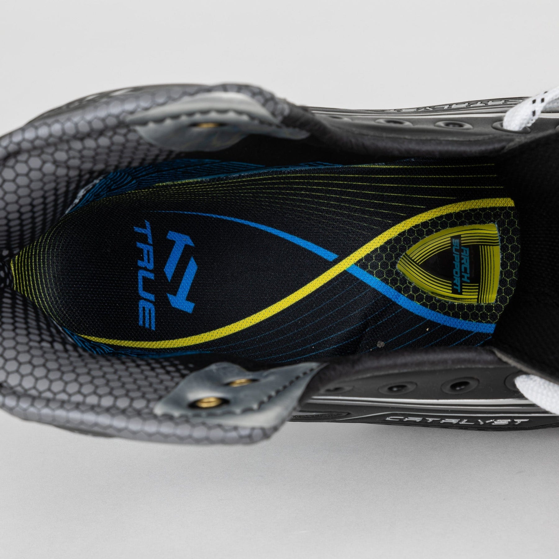 9X4 스케이트는 가벼운 프로 골리 텅과 성형 T-가드를 사용합니다. T-가드는 TRUE 스케이트에 자주 사용되며, 레이스 바이트와 충격으로부터 보호하도록 제작되었습니다. 텅과 T-가드는 골텐더에게 최고의 착용감, 편안함, 그리고 높은 수준의 보호력을 제공하도록 제작되었습니다.