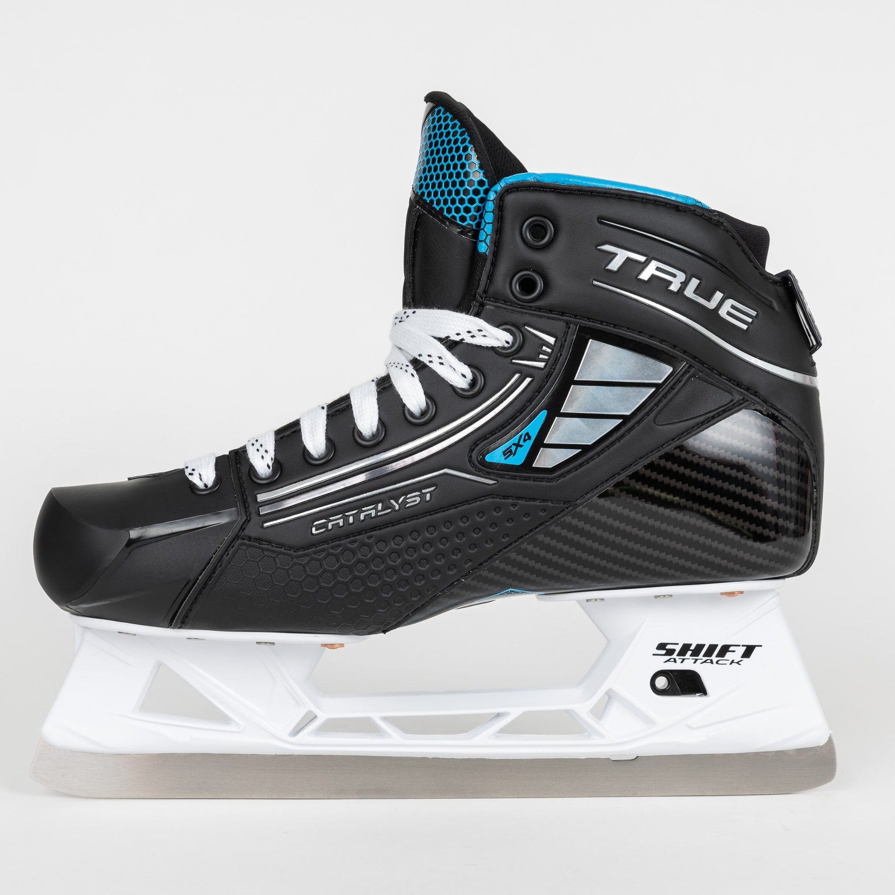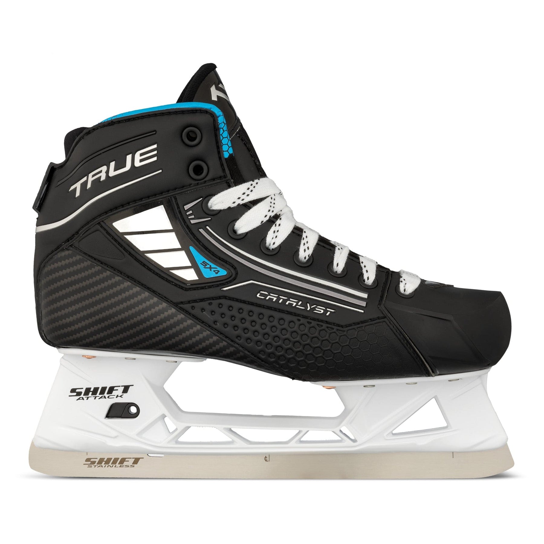 2024 TRUE 골리 스케이트 라인의 다른 모델들과 마찬가지로 5X4 골리 스케이트는 Shift Attack 홀더와 스테인리스 스틸 소재를 특징으로 합니다. 이 홀더는 벤치 체인지 기술로 스케이트 러너를 쉽고 간편하게 교체할 수 있도록 도와줍니다. 또한, 스테인리스 러너는 간편하며 일반 스틸 러너보다 더 오래 사용할 수 있도록 설계되었습니다.