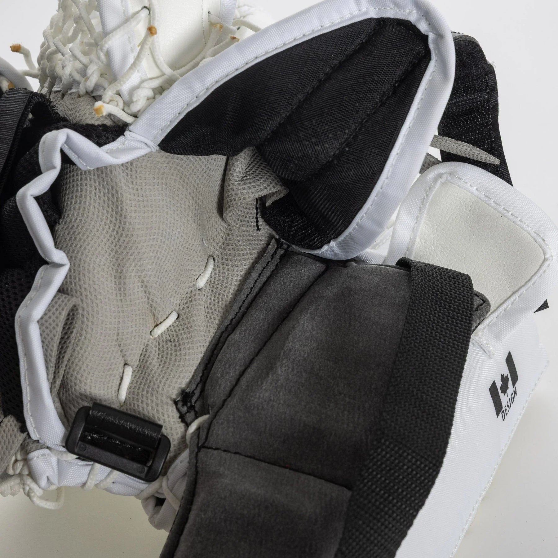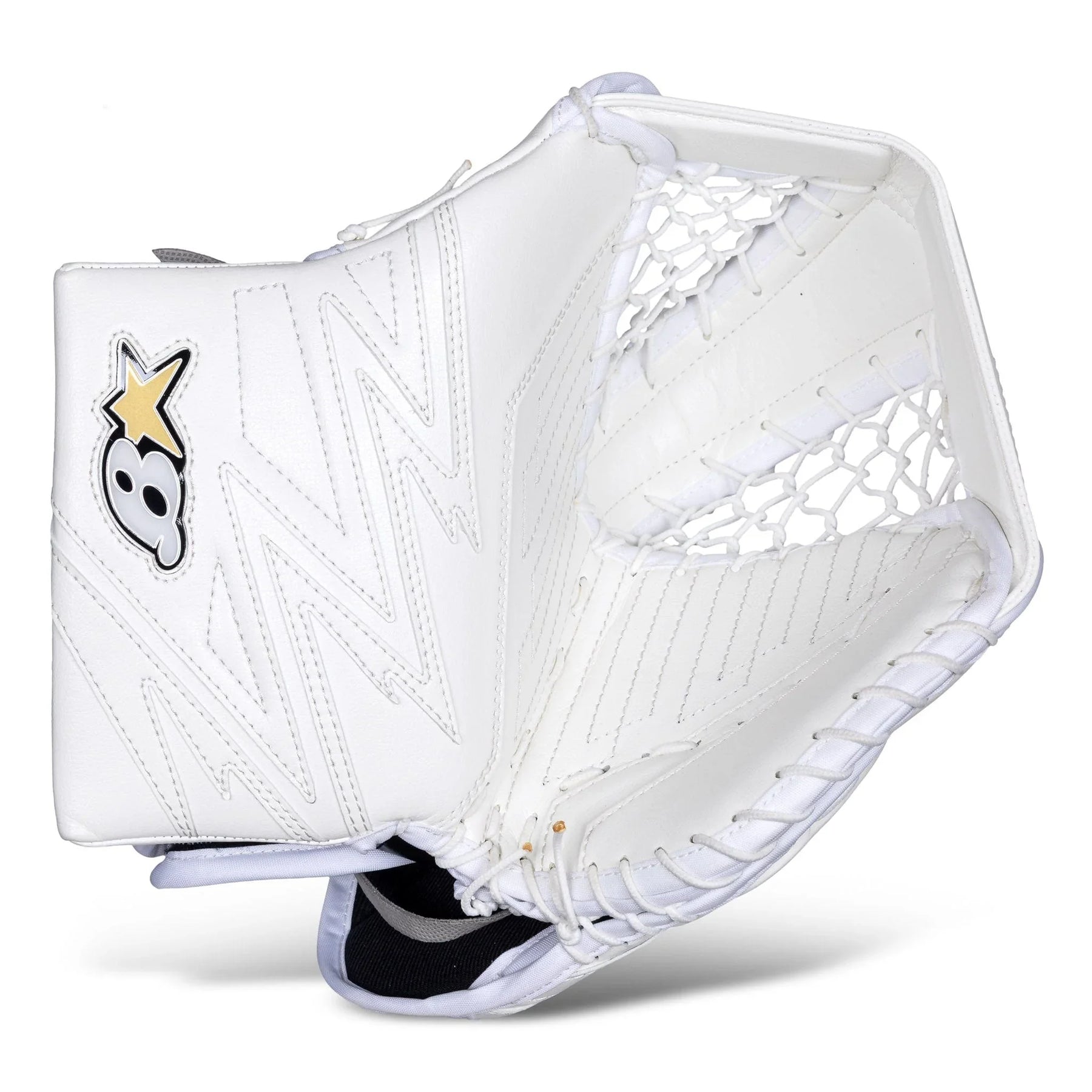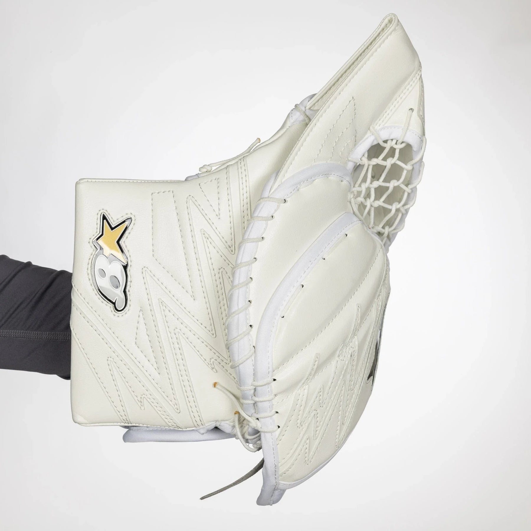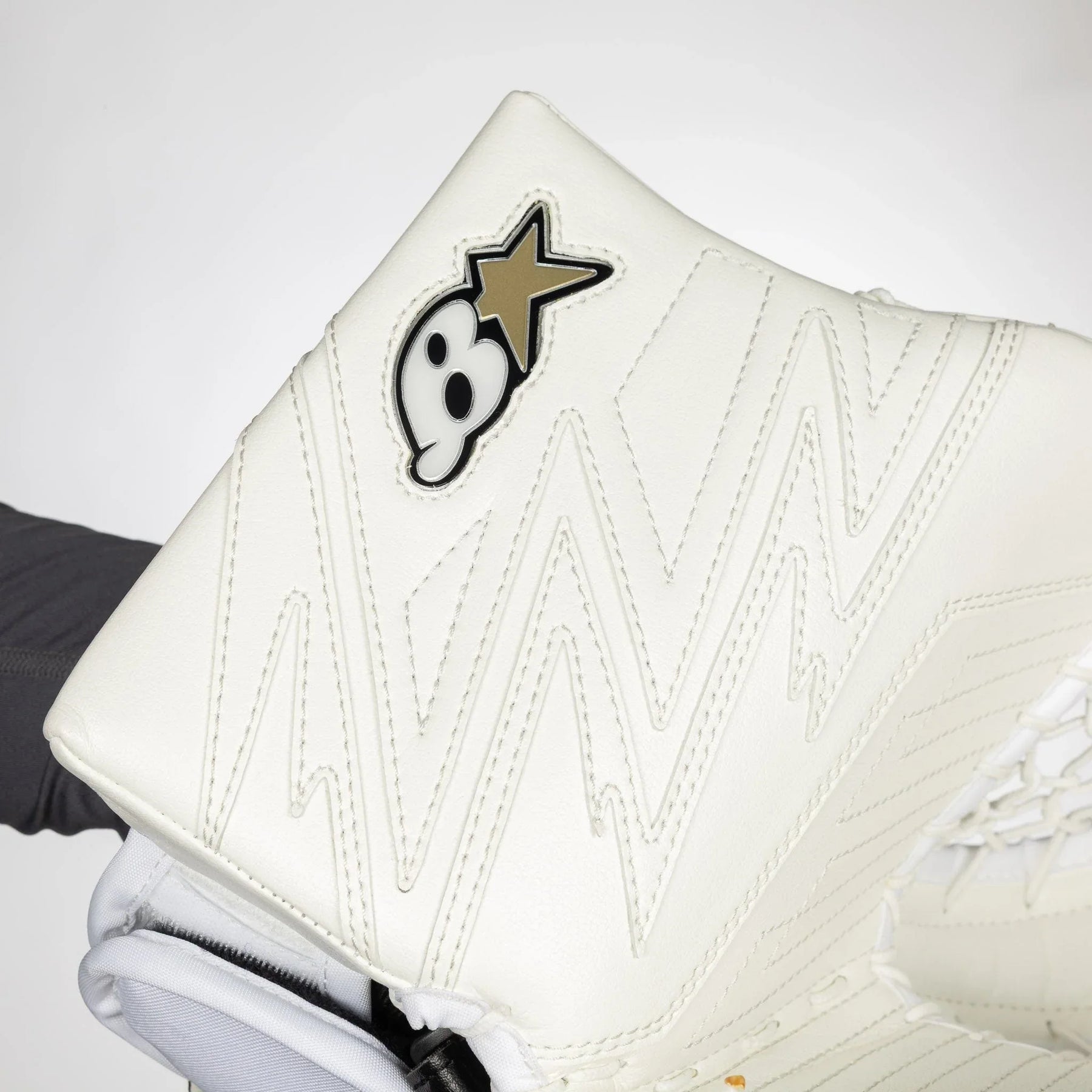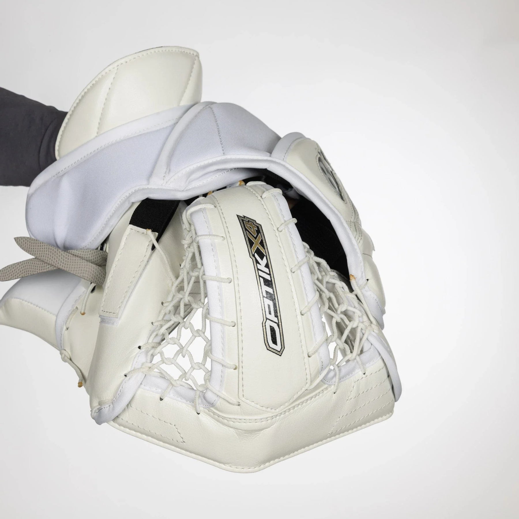 Optik X4 글러브는 전통적인 JenPro 외장 소재로 제작되었습니다. 이 소재는 내구성이 뛰어나고 신뢰할 수 있는 소재로, Brian의 거의 모든 골리 장비에서 찾아볼 수 있습니다.