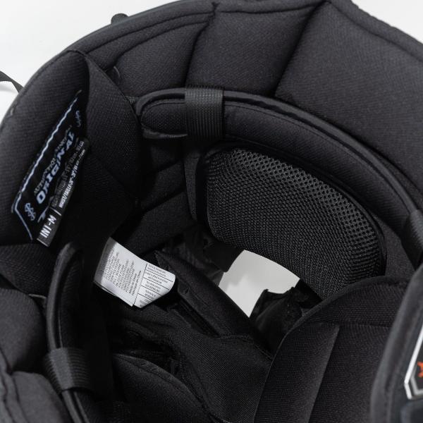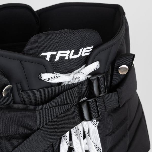 척추 보호를 위해 TRUE는 특허받은 IBP 3D 사출 성형 기술을 적용했습니다. 이 디자인은 팬츠가 가슴 보호대 아래, 패드가 끝나는 허리 아랫부분에 위치하도록 설계되었습니다. 골키퍼가 받을 수 있는 충격으로부터 보호하고 충격을 분산시키도록 고안되었습니다.