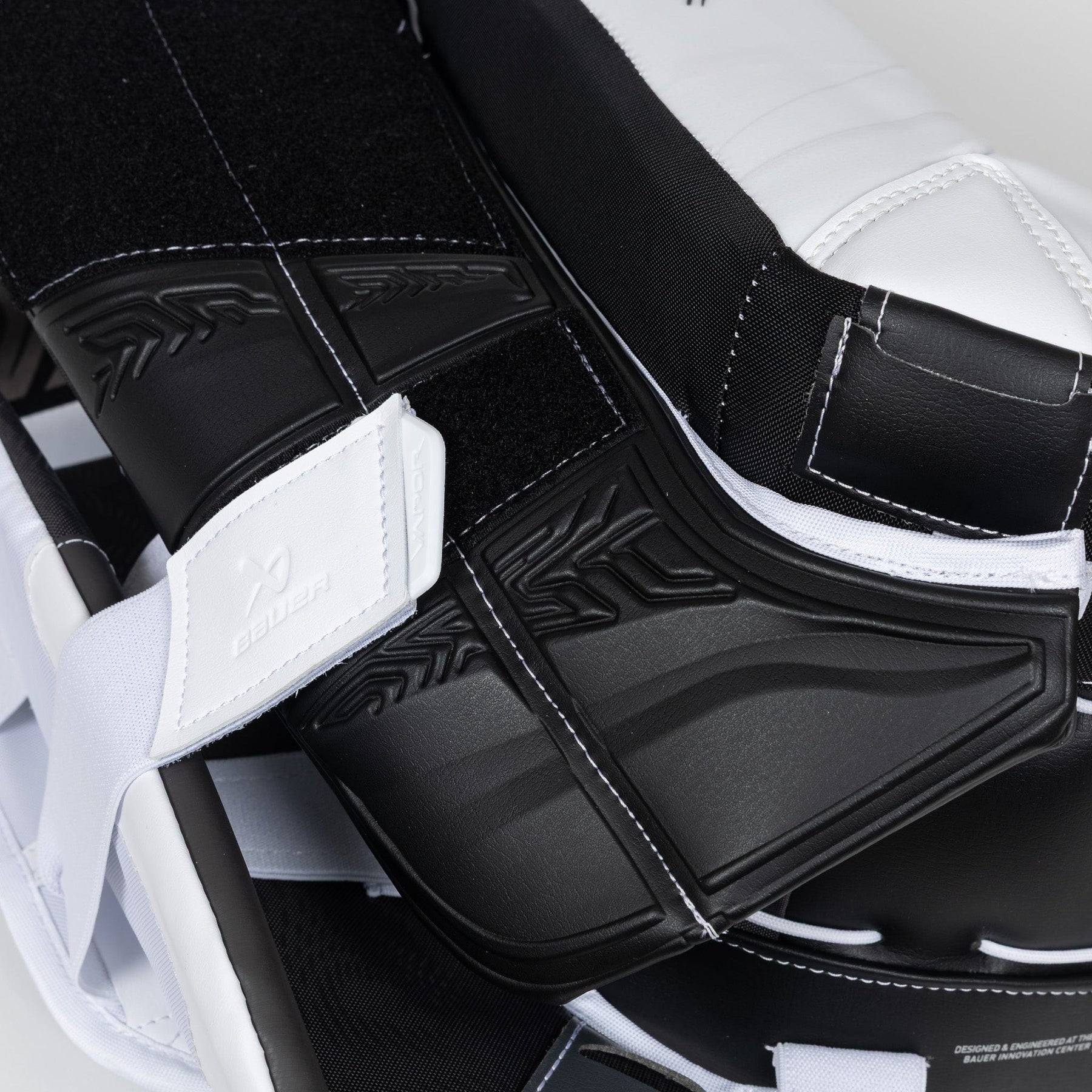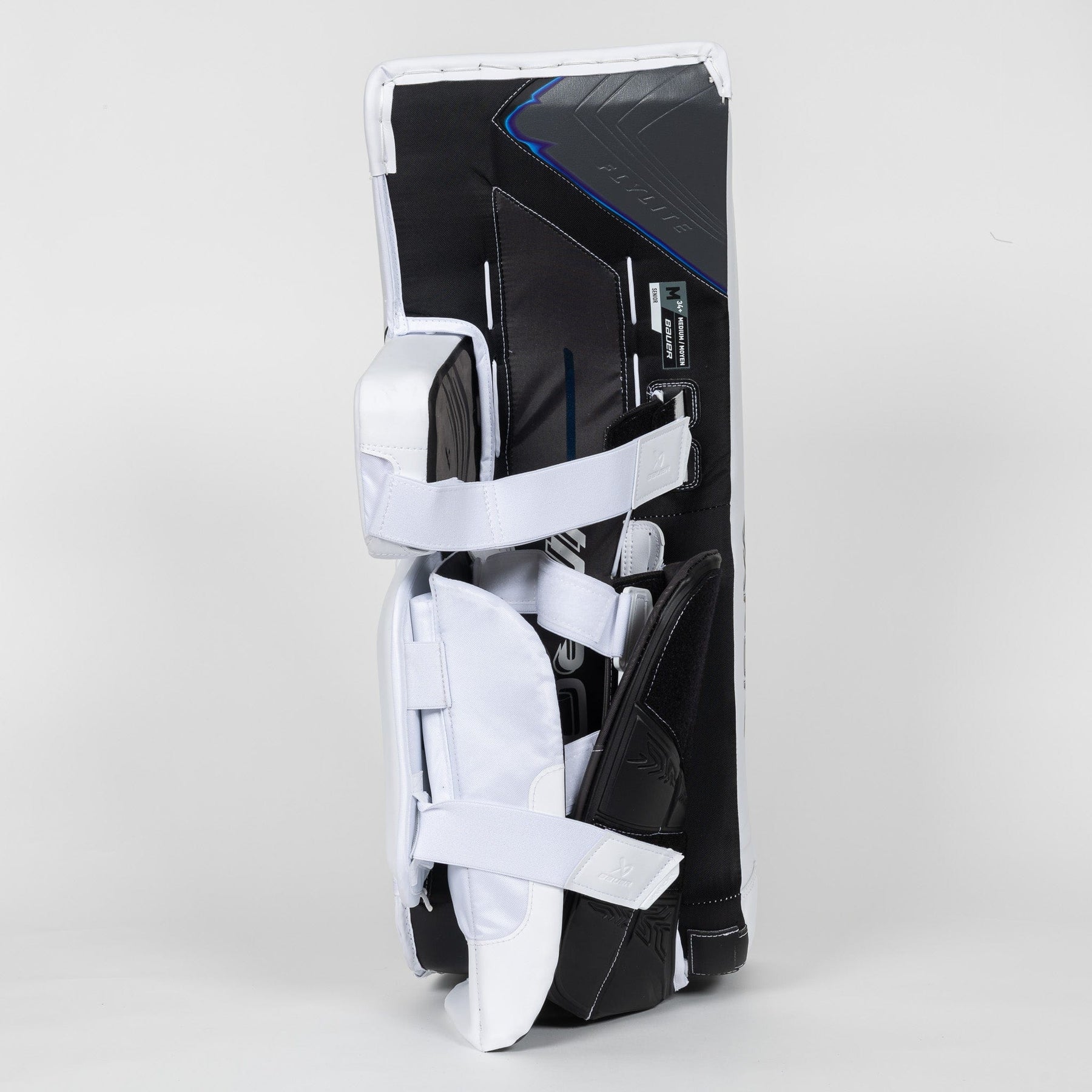모든 하키 골텐더가 알다시피, 빙판 위에서 성공하려면 믿을 수 있고 고성능의 장비가 필수적입니다. 바우어는 2025 시즌을 위해 기존 하이퍼라이트(Hyperlite) 라인에서 많은 부분을 업그레이드한 새로운 플라이라이트(Flylite) 골리 라인을 출시했습니다. 플라이라이트 레그 패드는 SL1D3R 스킨 소재, 리바운드 부스트 코어, 그리고 스태빌리플렉스(Stabiliflex) 무릎 블록을 특징으로 합니다.