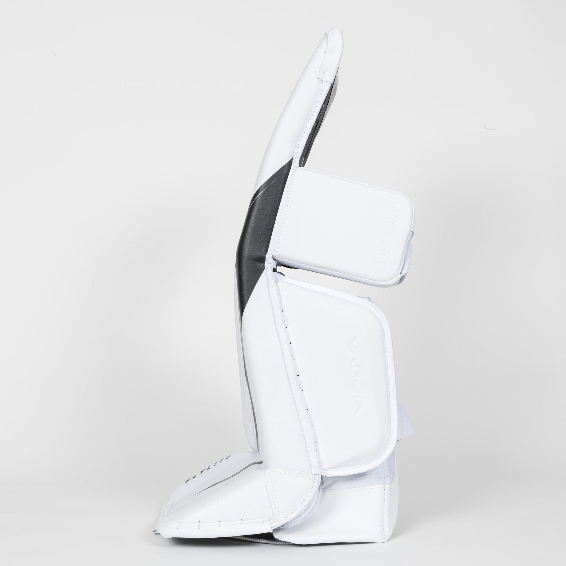 플라이라이트 레그 패드는 단일 곡선형 브레이크 디자인을 사용합니다. 즉, 패드의 다리 채널이 미리 곡선으로 가공되어 골텐더의 다리 모양에 더욱 쉽게 맞춰집니다. 무릎 위아래의 플렉스 포인트는 골텐더의 유연성과 기동성을 향상시키고 더욱 자연스럽고 편안한 착용감을 제공하도록 설계되었습니다.