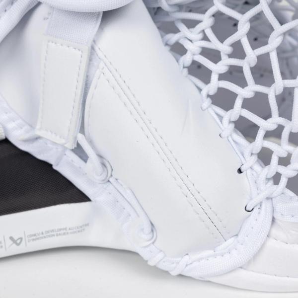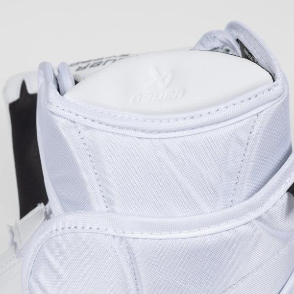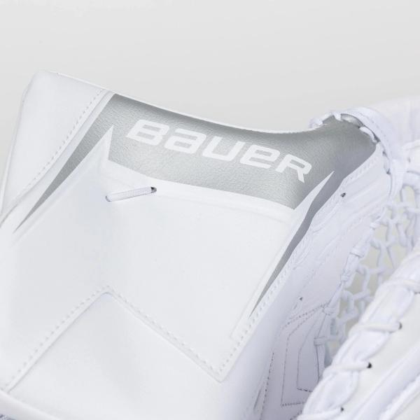 손바닥 부분은 폴리카보네이트 소재로 보호 및 덮여 있습니다. 이 디자인은 손을 안정적으로 고정시켜주며, 추가된 패딩은 골키퍼가 불편한 부위에 가해질 수 있는 충격으로부터 손을 보호해줍니다. 또한, 바우어는 골키퍼가 세이브를 하는 동안 편안함과 보호 기능을 제공하는 내쉬 그립 팜 라이너를 적용했습니다.