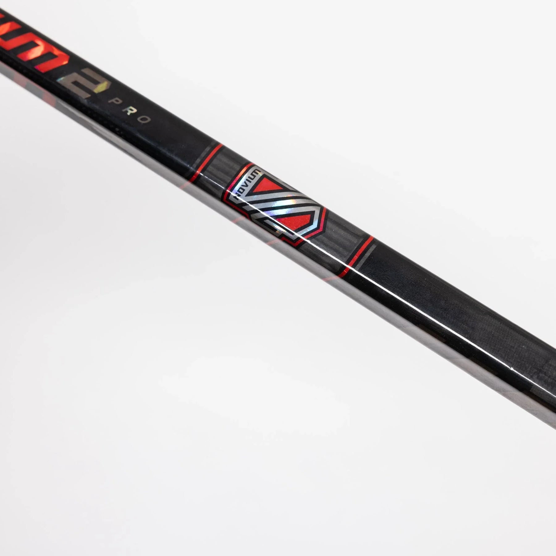노비움2 프로는 검은색 바탕에 노비움 로고에 붉은색 포인트가 더해져 있습니다. 칼등 부분과 워리어 로고에는 홀로그램 및 반사 소재가 사용되었으며, 칼날 윗부분과 샤프트 끝부분에는 카본 소재의 겹겹이 쌓인 구조가 눈에 띕니다.