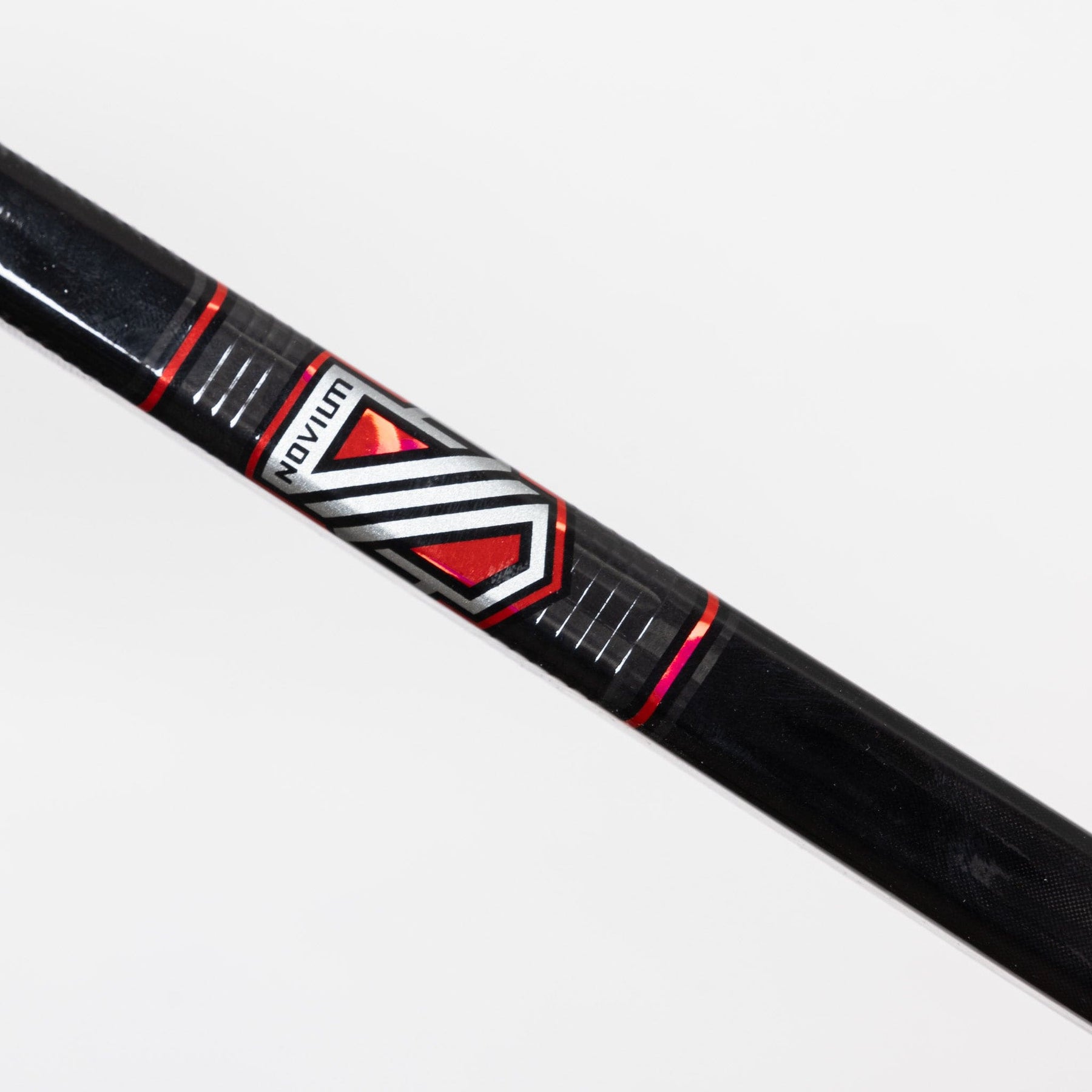 Novium2 Pro는 검은색 베이스에 Novium 로고에 붉은색이 은은하게 섞여 있습니다. 샤프트와 Warrior 로고에는 홀로그램 및 반사 마감이 적용되었습니다. 샤프트 상단과 블레이드 모두에서 탄소 층이 눈에 띕니다.