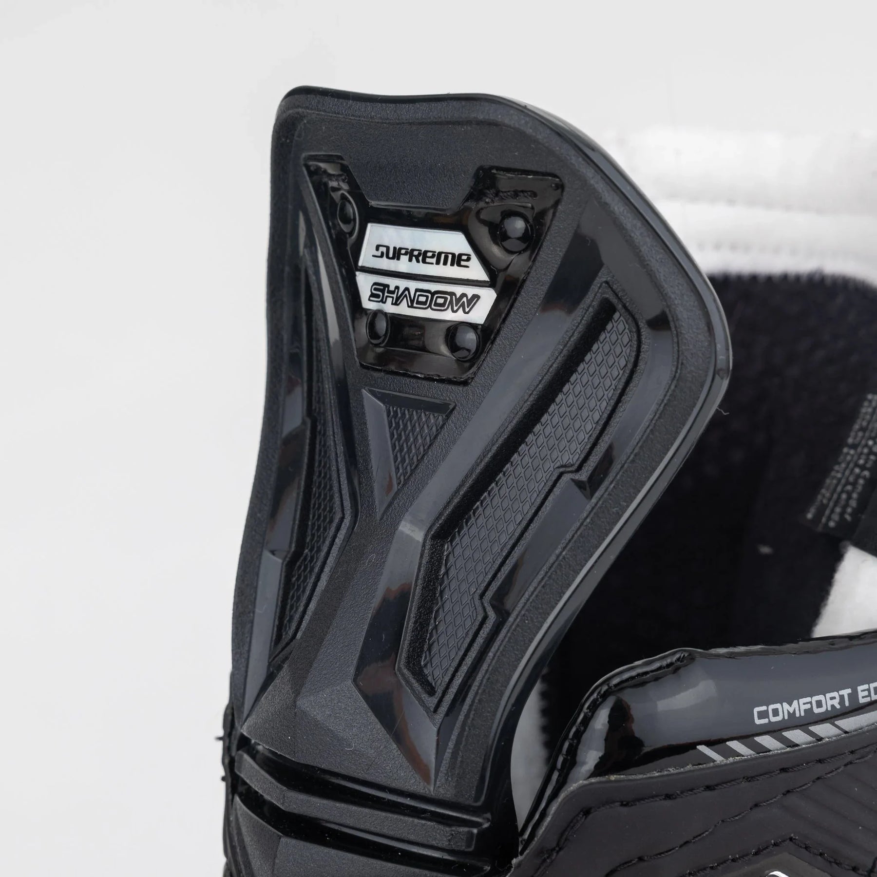 최신 최고급 Supreme을 위해 Bauer는 Supreme 라인의 시그니처 골드 컬러를 없애고 깔끔한 블랙 컬러를 선택했으며, 측면의 직조 부분에 체크 무늬 패턴을 더했습니다. "Shadow"라는 문구가 바깥쪽 힐에 표시되어 있으며, Bauer의 새로운 그래픽 로고는 뒷면에 있습니다. 실버 액센트가 가미된 블랙 컬러로의 변화는 더욱 깔끔하고 날카로운 느낌을 줍니다.