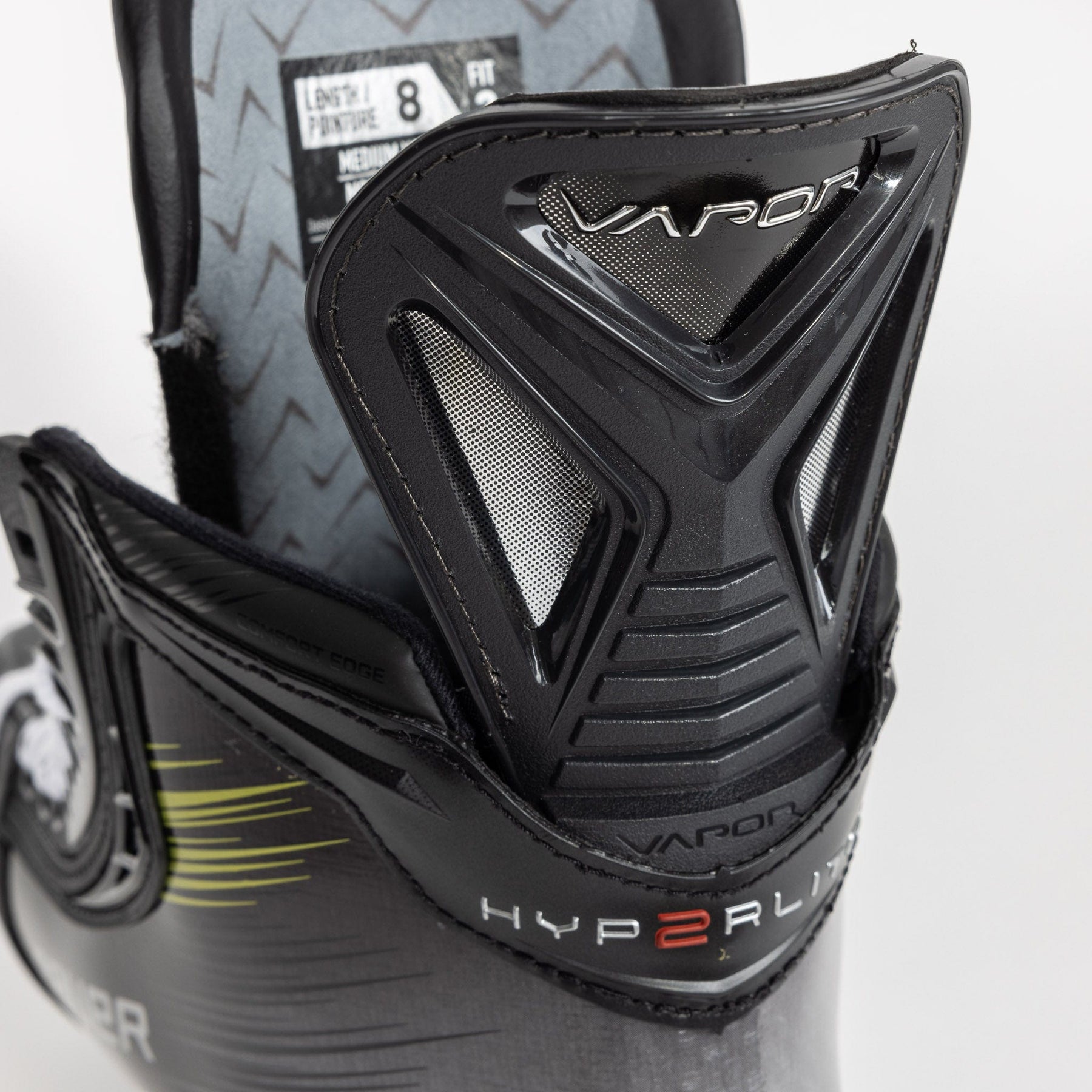 HyperLite 2 스케이트의 기본 깔창은 여전히 Bauer의 Lock-Fit Pro로, 편안함과 뛰어난 컨트롤을 모두 제공합니다. Lock-Fit은 측면에 추가적인 그립감을 제공하여 스케이트를 타는 동안 발이 제자리에 고정되도록 설계되었습니다. 또한, 이 디자인은 보폭을 줄이는 데에도 도움을 줍니다.