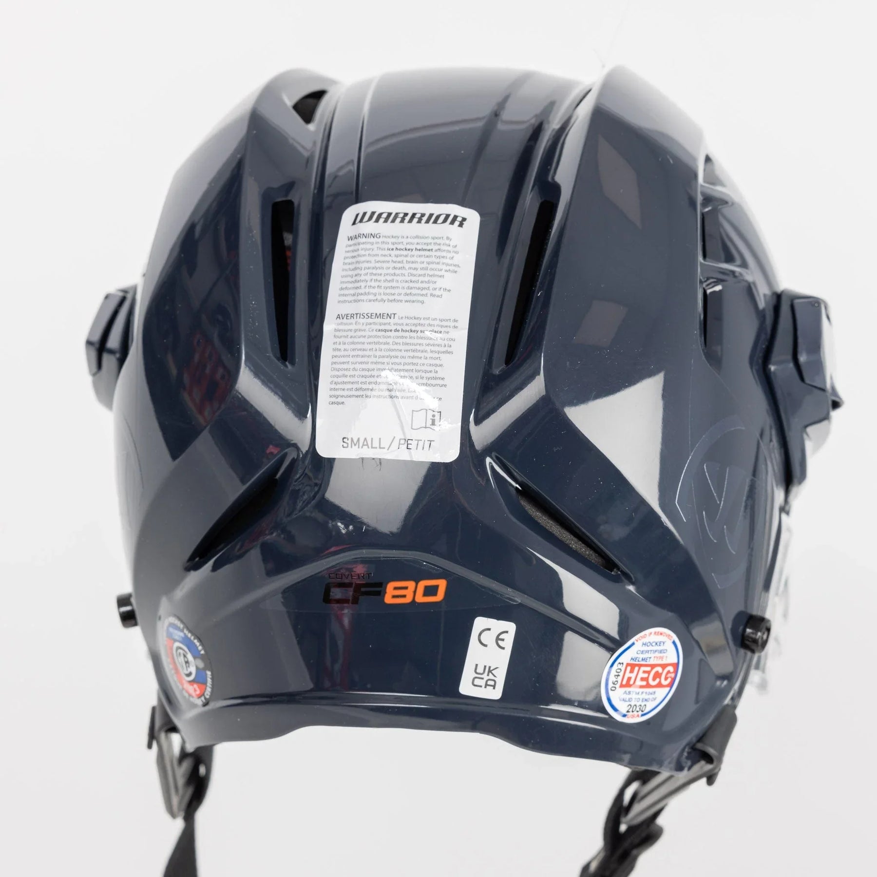 Covert CF80 헬맷은 HECC(하키 장비 인증 위원회), CSA(캐나다 표준 협회) 및 CE(유럽 공동체) 인증을 획득했습니다. 이러한 인증 스티커는 각 리그의 해당 표준을 준수함을 나타냅니다.