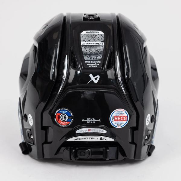 Hyperlite 2 헬맷은 HECC(하키 장비 인증 위원회), CSA(캐나다 표준 협회), UKCA(영국 적합성 평가) 및 CE(유럽 공동체) 인증을 획득했습니다. 이러한 인증 스티커는 각 리그의 해당 표준을 준수함을 나타냅니다.
