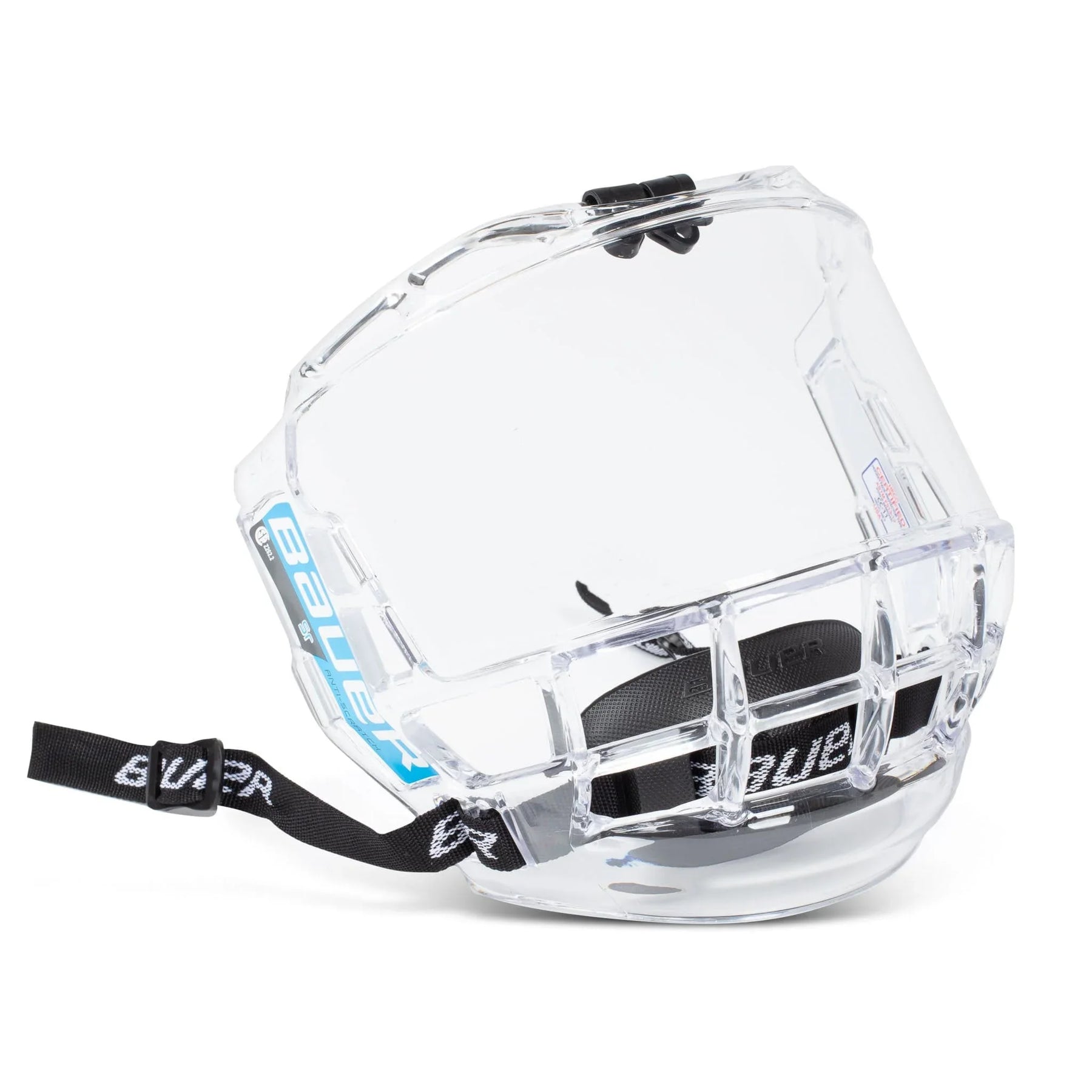 Bauer Concept 3 Full Shield 전체는 쉴드 하단의 날개 모양 개구부를 포함하여 고강도 폴리카보네이트로 제작되었습니다. 바이저 렌즈 외부는 긁힘 방지 코팅 처리되어 날아오는 파편, 긁힘 및 경기 중 발생할 수 있는 기타 충격으로부터 내구성을 높였습니다.