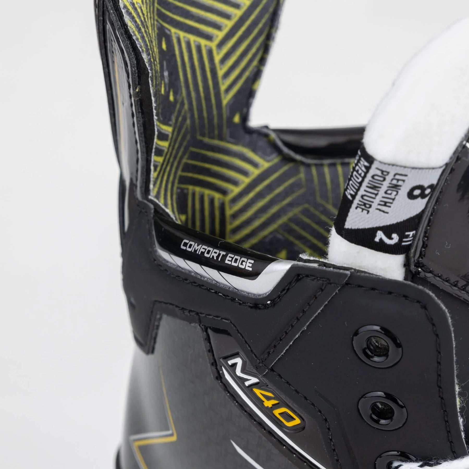 M40의 경우, 바우어는 경기 중 습기를 흡수하고 냄새를 방지하기 위해 내부에 발수성 마이크로파이버 라이너를 사용했습니다. 이러한 종류의 라이너를 포함함으로써 젖은 부츠로 인한 방해 없이 경기 내내 편안함을 유지할 수 있습니다. 또한 발목 부분에는 기존 폼보다 약간 두껍지만 더욱 밀착되고 열성형이 가능한 에어로폼 기술이 적용되었습니다.