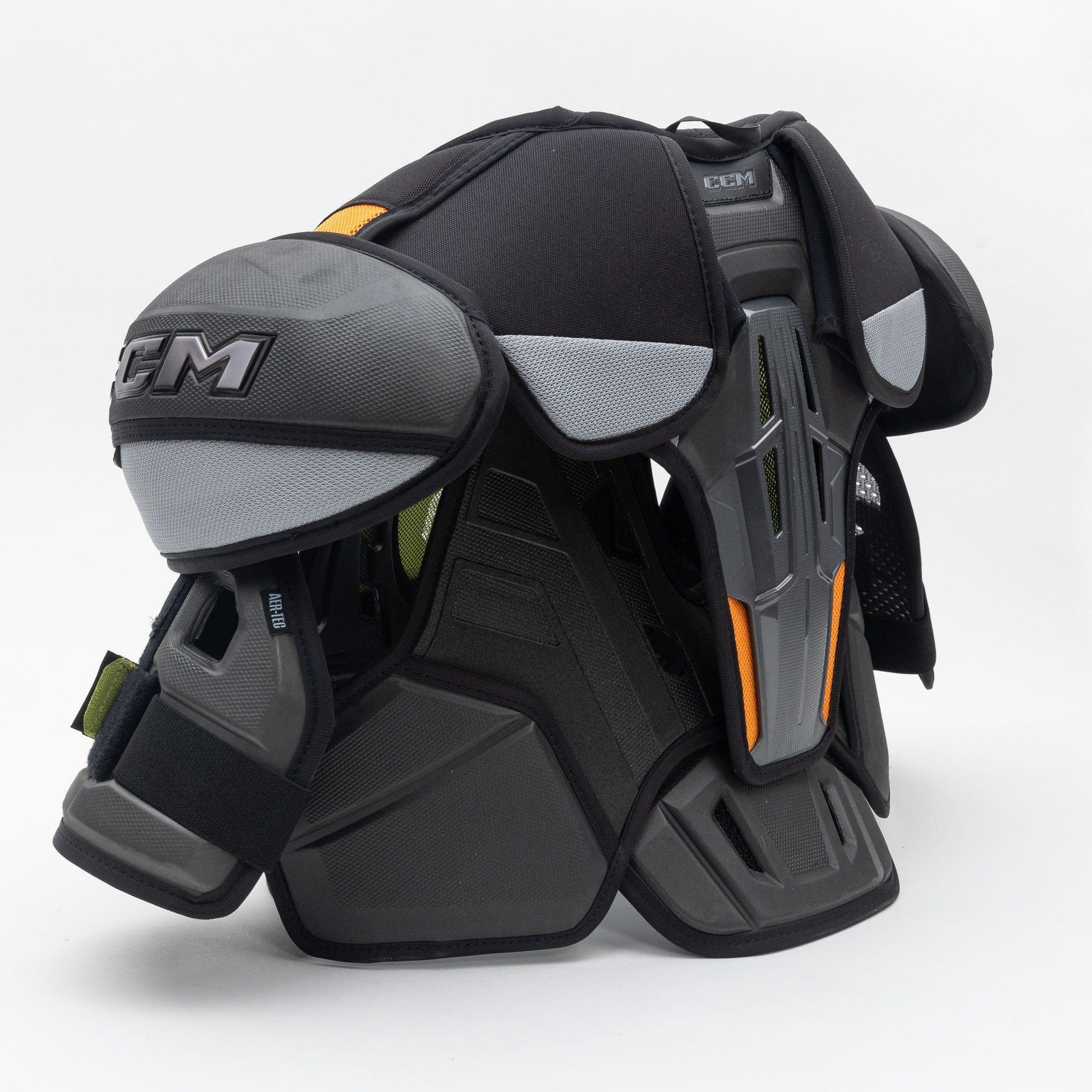 플로팅 흉골 및 척추 하이브리드 보호대와 신경총 및 하부 척추 부위의 D30 소재가 포함되어 있습니다. 플로팅 흉골 보호대는 뛰어난 기동성과 편안함을 제공하며, 압축 성형된 고밀도 폼과 신경총 및 하부 척추 부위의 D30 소재는 빙판 위에서 최대한의 보호 기능을 제공합니다.