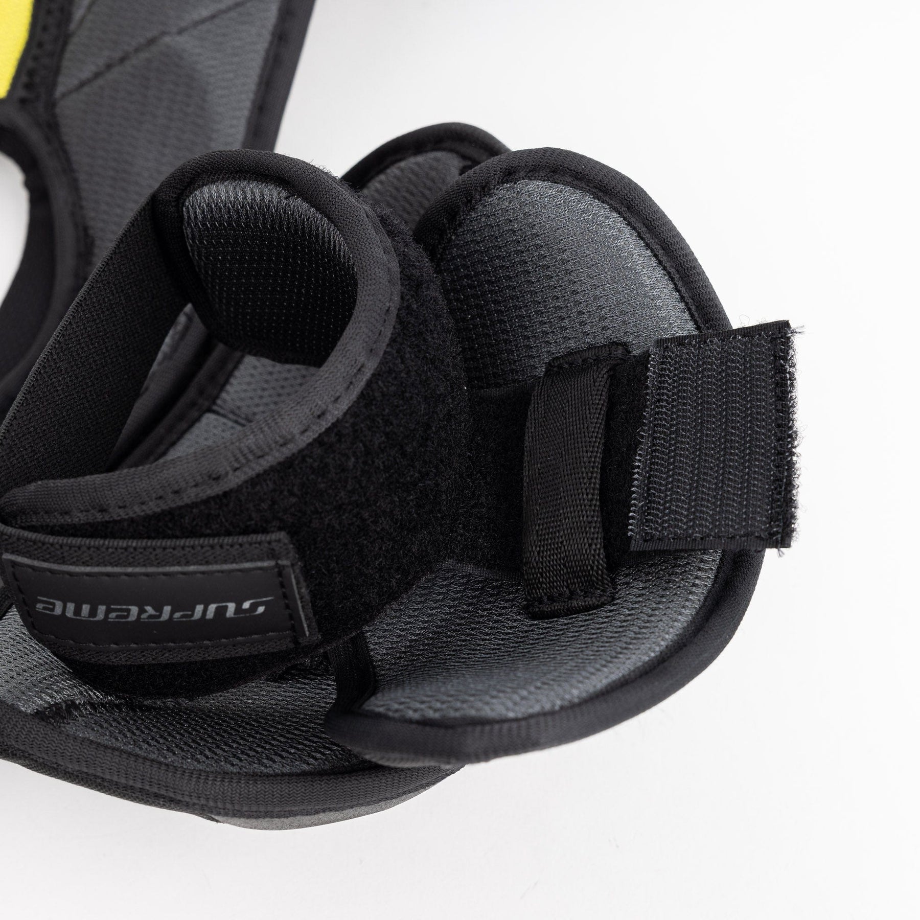 Supreme Mach는 벨크로로 조절 가능한 팔걸이를 특징으로 하며, 5cm 길이로 고정할 수 있어 팔걸이를 원하는 대로 조절할 수 있습니다. Bauer는 가슴 보호대 팔걸이에 완전히 새로운 AMP 2.0 힌지 암 디자인을 적용했습니다. AMP 2.0은 플레이 중 움직임에도 이동성을 희생하지 않는 디자인을 채택하여 게임 내내 완벽하게 보호됩니다.