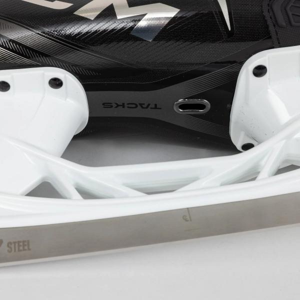 Tacks XF90은 금속 핀 블레이드 잠금 시스템이 있는 퀵 릴리스 블레이드인 SpeedBlade XS 홀더를 특징으로 합니다. 여기에 CCM 스텝 스틸이 결합되었습니다. 이 스틸은 높이가 높아지고 두께가 3mm인 최고급 강철로, 더 나은 엣지 컨트롤을 제공하고 자신감 있게 얼음을 파고들 수 있도록 해줍니다.