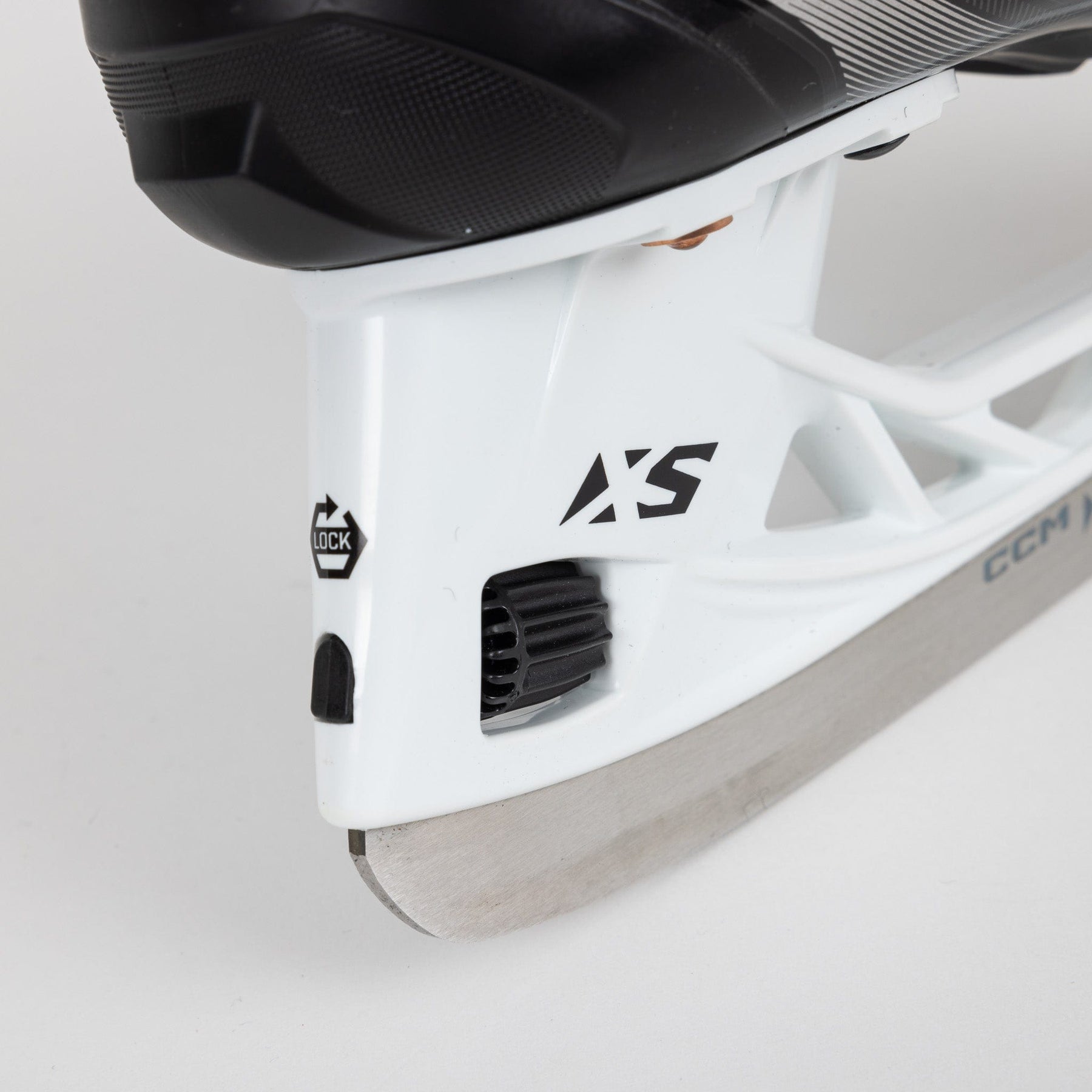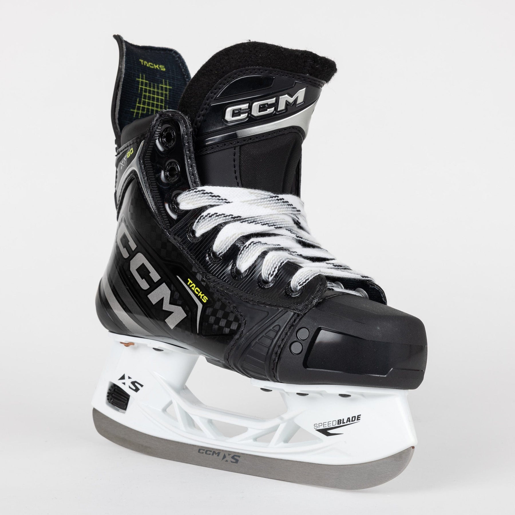XF80 스케이트는 CCM의 퀵 릴리스 홀더인 SpeedBlade XS 홀더를 사용합니다. SpeedBlade XS 홀더는 금속 핀 블레이드락 시스템을 통해 스틸 소재를 한 곳에 안전하게 고정합니다. 이 홀더와 함께 제공되는 XF80 스케이트는 XS Pro 스테인리스 스틸 소재로 제작됩니다. XS Pro는 더 높은 블레이드로, 더 나은 어택 앵글과 오래 지속되는 날카로움을 제공하여 스케이팅 성능을 향상시킵니다.