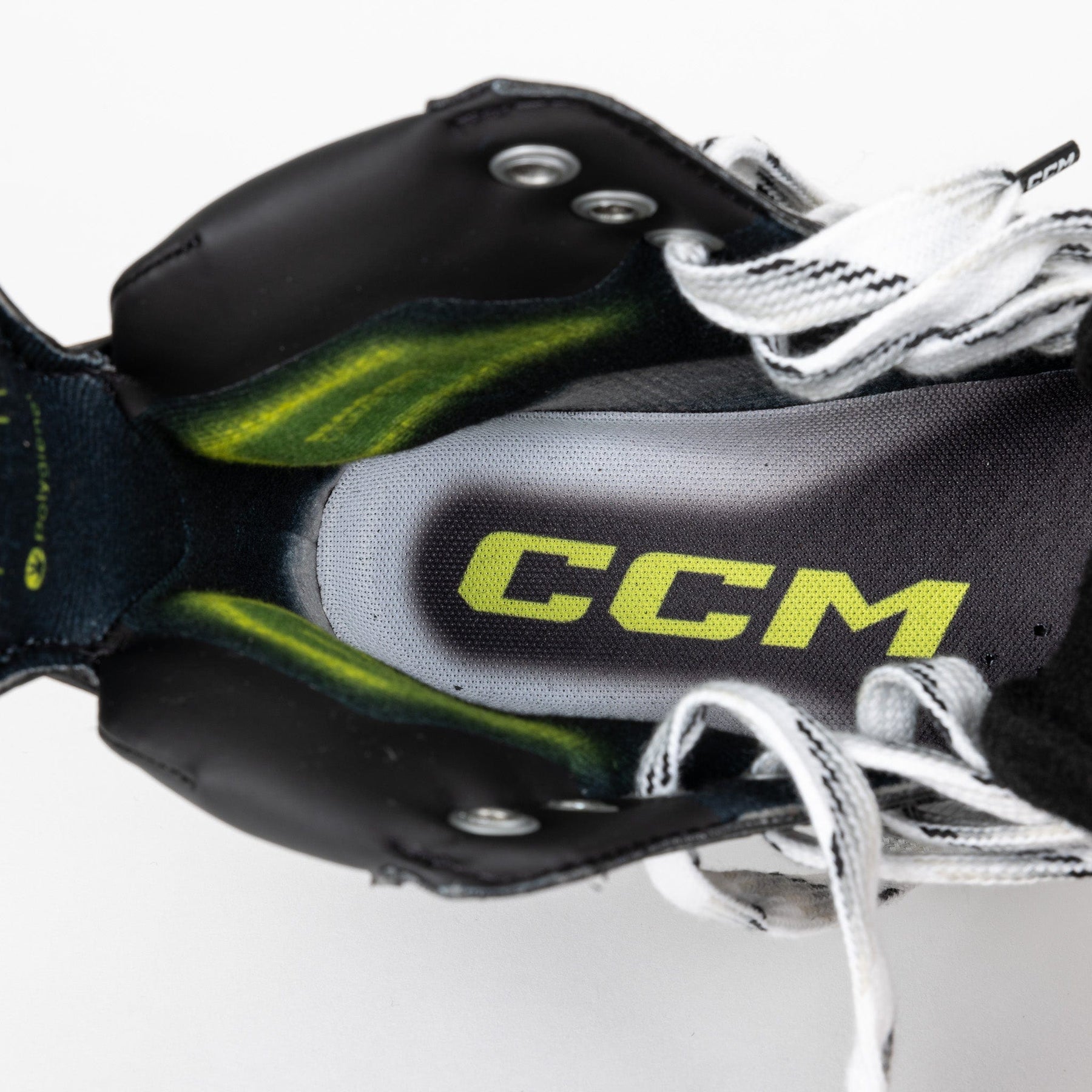 CCM은 이 스케이트의 텅을 제작할 때 편안함을 최우선으로 생각했습니다. 7mm 두께의 검은색 펠트에 폼 코어 보강재와 몰드 레이스바이트 보호 텅을 적용한 메타토믹 트리테크 텅을 사용한 이유도 바로 여기에 있습니다. 모든 보호 기능이 발을 감싸 탁월한 착용감과 편안함을 선사합니다.