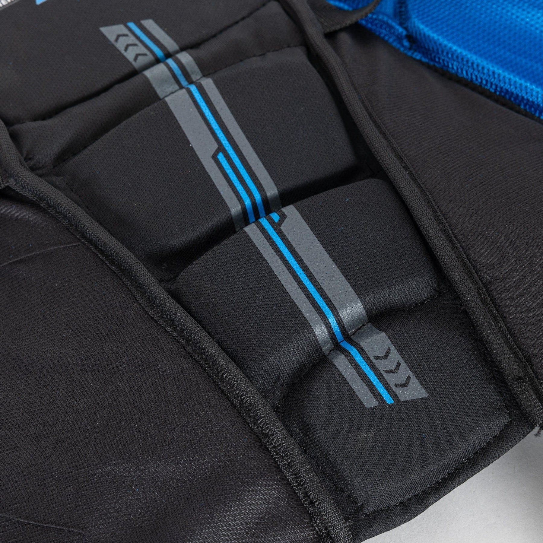 이 보호대는 몰드형 PE(폴리에틸렌) 삽입물과 허벅지 부위를 덮는 고밀도 폼으로 충분한 보호 기능을 제공합니다. 이러한 소재는 보호대를 가볍게 유지하면서도 강력한 샷, 슬래시 및 블록으로부터 선수를 효과적으로 보호합니다.