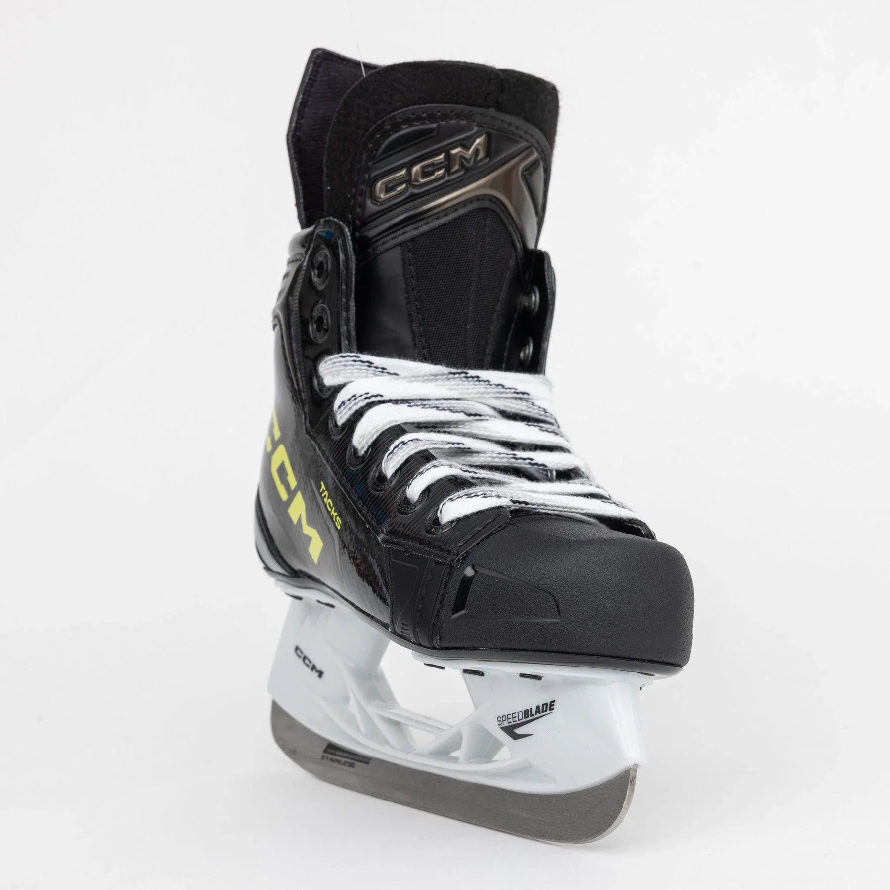 CCM 스피드블레이드는 유스 XF Pro에 장착된 블레이드입니다. 교체 불가능한 블랙 스틸 블레이드와 결합되어 있으며, 블레이드 상단이 돌출되어 공격 각도가 향상되었습니다.
