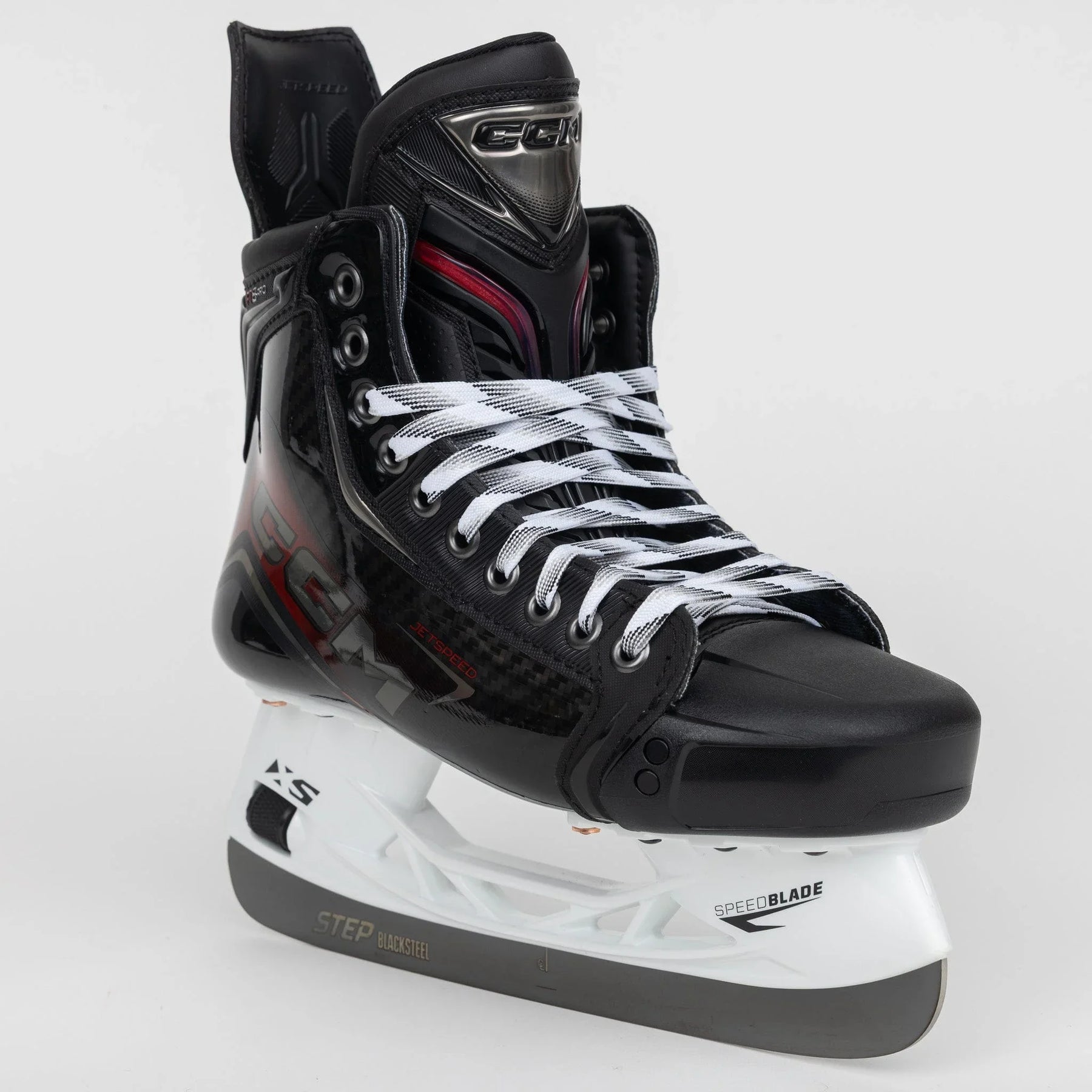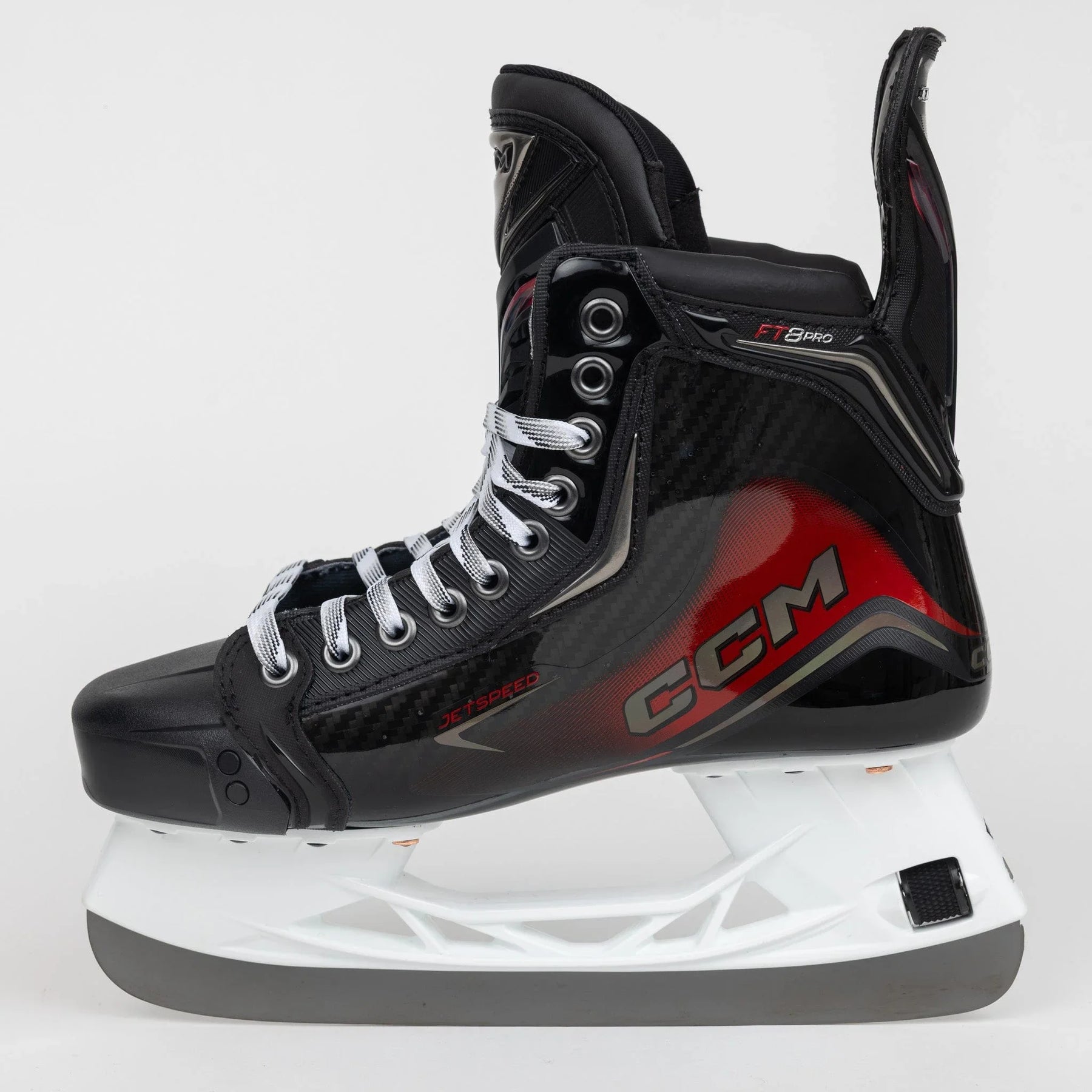 FT8 Pro Jetspeed 라인의 모델을 따라 스케이트 전체에 빨간색과 검은색이 사용되었습니다. 올해 버전은 더욱 유려한 디자인을 채택했으며, 빨간색이 쿼터 패키지의 카본 체커링과 만나고 스케이트 측면과 힐 부분에 홀로그램 CCM 로고가 적용되었습니다.