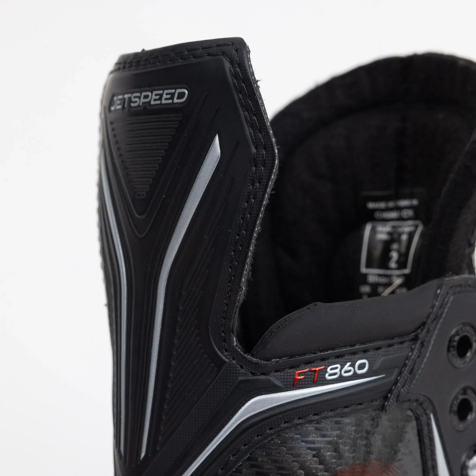 FT860 스케이트는 더욱 촘촘한 ADPT 메모리 폼을 사용하여 더욱 편안한 착용감을 제공합니다. 기본 사이즈는 레귤러 핏이며, 1부터 3.5까지 반 사이즈 단위로 제공됩니다.부츠 구조 및 강성 프로필