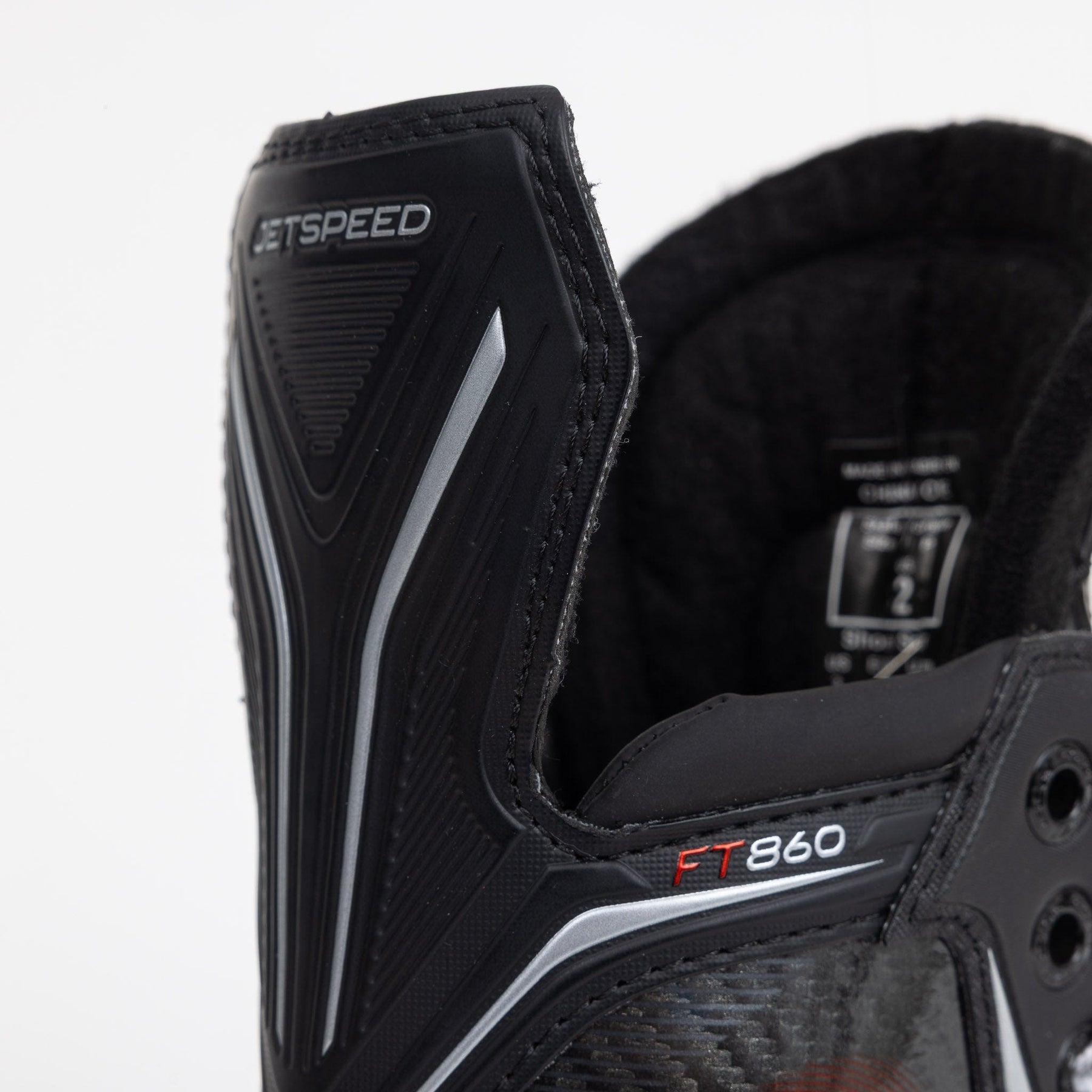 CCM은 레크리에이션 레벨 플레이어를 위한 FT860 스케이트를 출시했습니다. 이 Jetspeed 스케이트의 주요 특징으로는 2D 쿼터 구조, 7mm 펠트 텅, CCM Ortholite 깔창, 그리고 미리 날카롭게 연마된 스테인리스 러너가 장착된 Speedblade 홀더가 있습니다.스케이트 핏 프로필