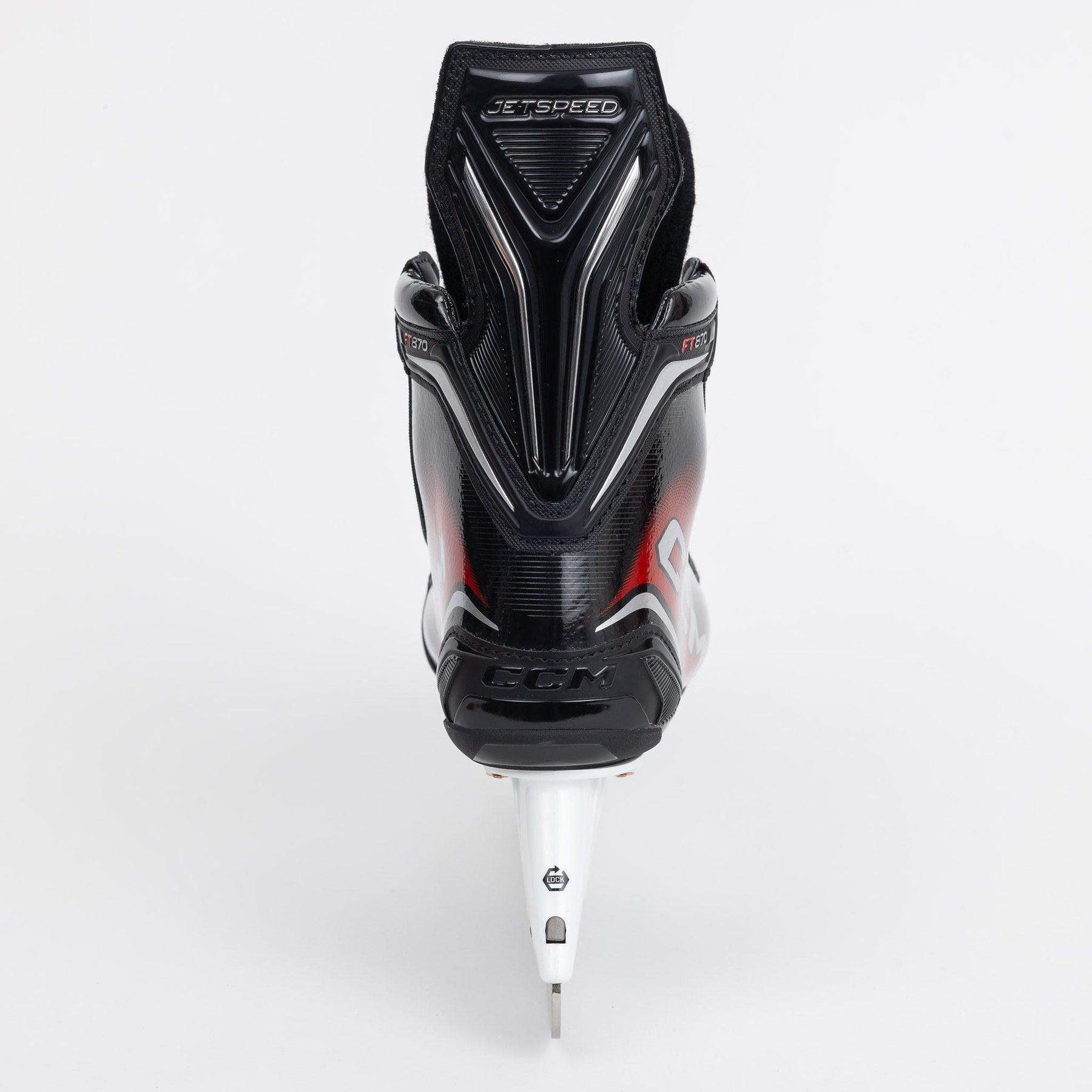FT870 스케이트는 새로운 Jetspeed 라인 출시 당시 선보였던 엘리트급 그래픽과 매우 흡사하며, 스케이트 전체에 빨간색과 검은색이 사용되었습니다. 쿼터 패키지에는 빨간색과 검은색, 회색이 어우러져 흐르는 듯한 디자인을 자랑하며, 스케이트 측면과 뒤꿈치에는 짙은 실버 색상의 CCM 로고가 새겨져 있습니다.