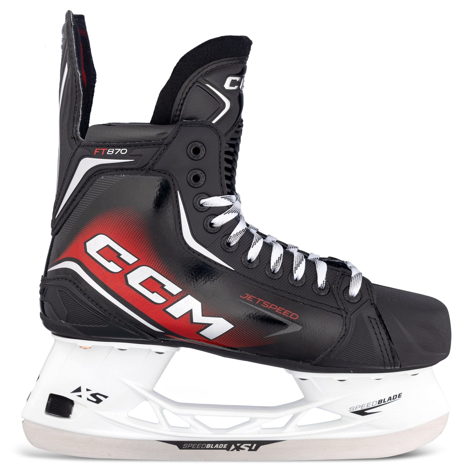 CCM은 레크리에이션 레벨 플레이어를 위한 FT870 스케이트를 출시했습니다. 이 Jetspeed 스케이트의 주요 특징으로는 2D 메타프레임 구조, HD 마이크로파이버 라이너, 7mm 펠트 텅, CCM 오솔라이트 깔창, 그리고 XS1 스틸 소재의 Speedblade XS 홀더가 있습니다.스케이트 핏 프로필