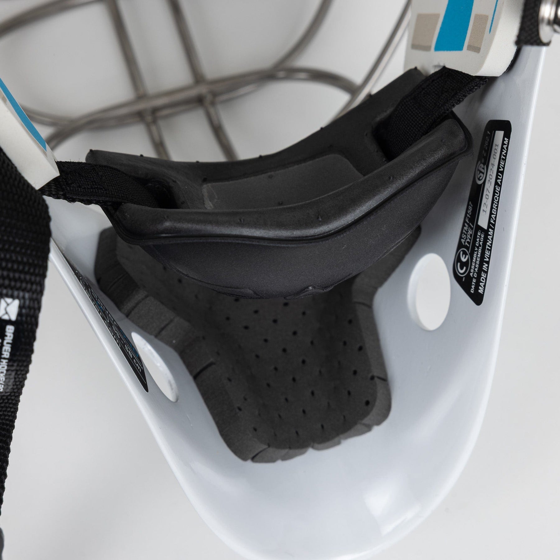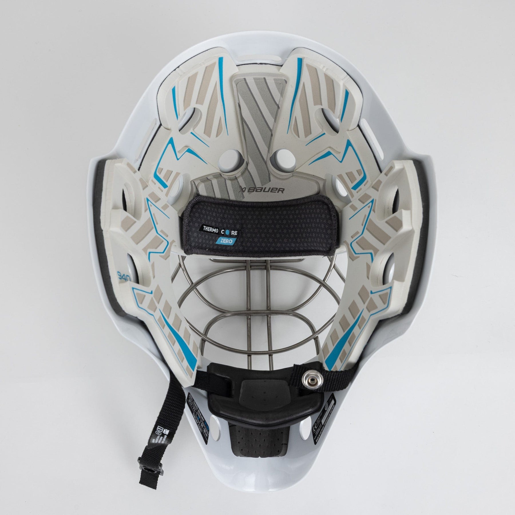 940 골리 마스크의 땀받이는 바우어의 Thermocore Zero 소재로 제작되어 땀을 빠르게 흡수하고, 경기 내내 골키퍼를 건조하고 시원하게 유지하도록 설계되었습니다.